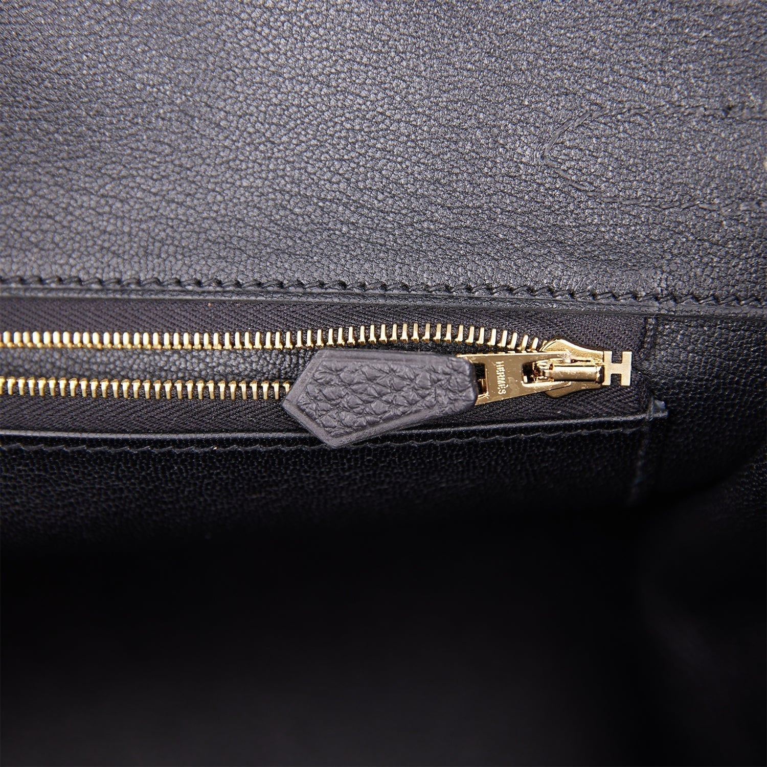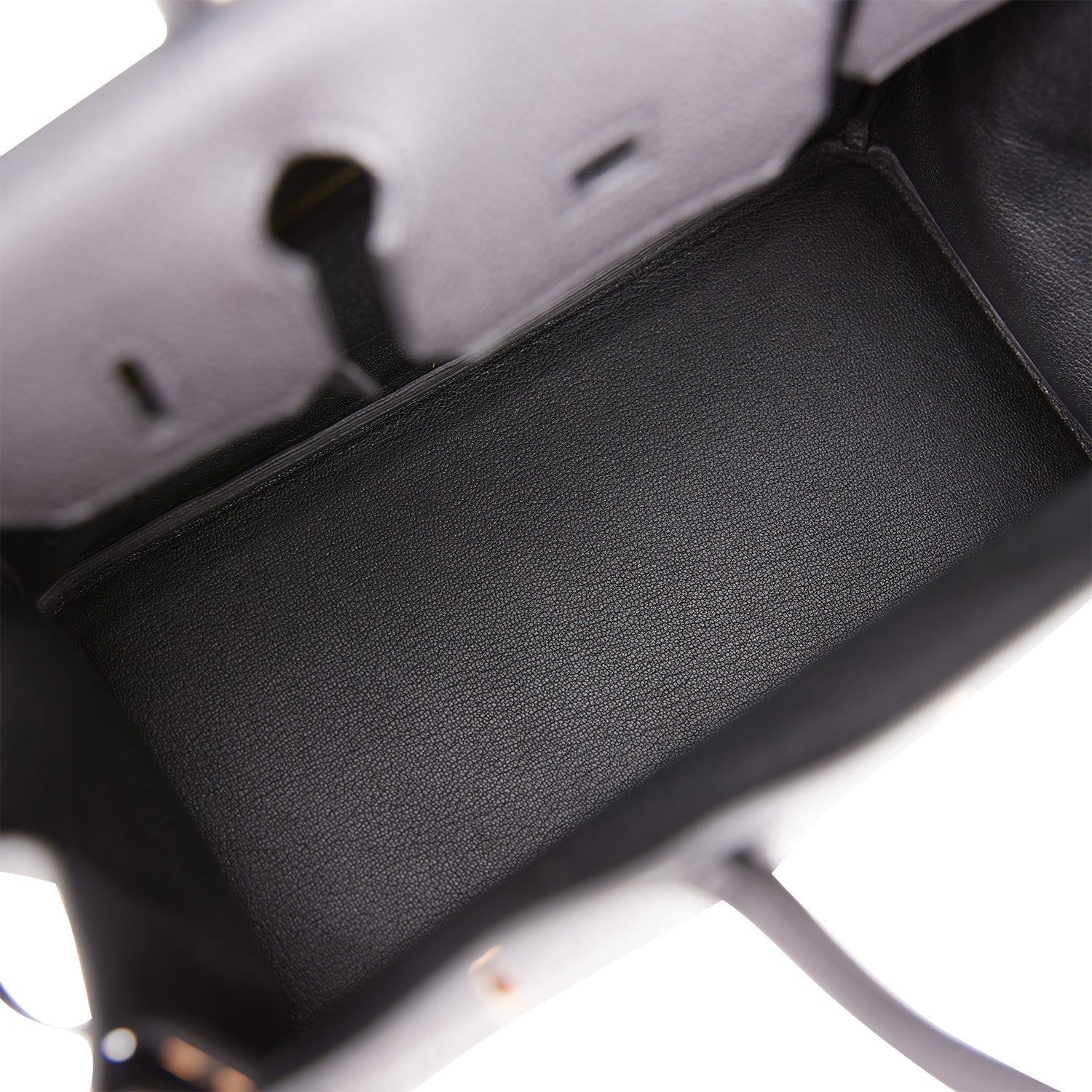 This Birkin is in Black togo leather with rose gold hardware and has tonal stitching, front flap, two straps with center toggle closure, clochette with lock and two keys, and double rolled handles.