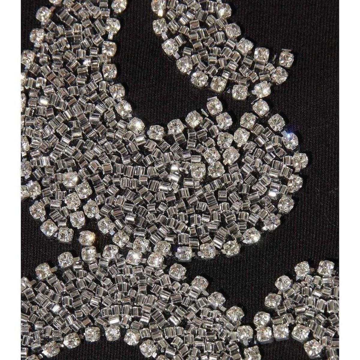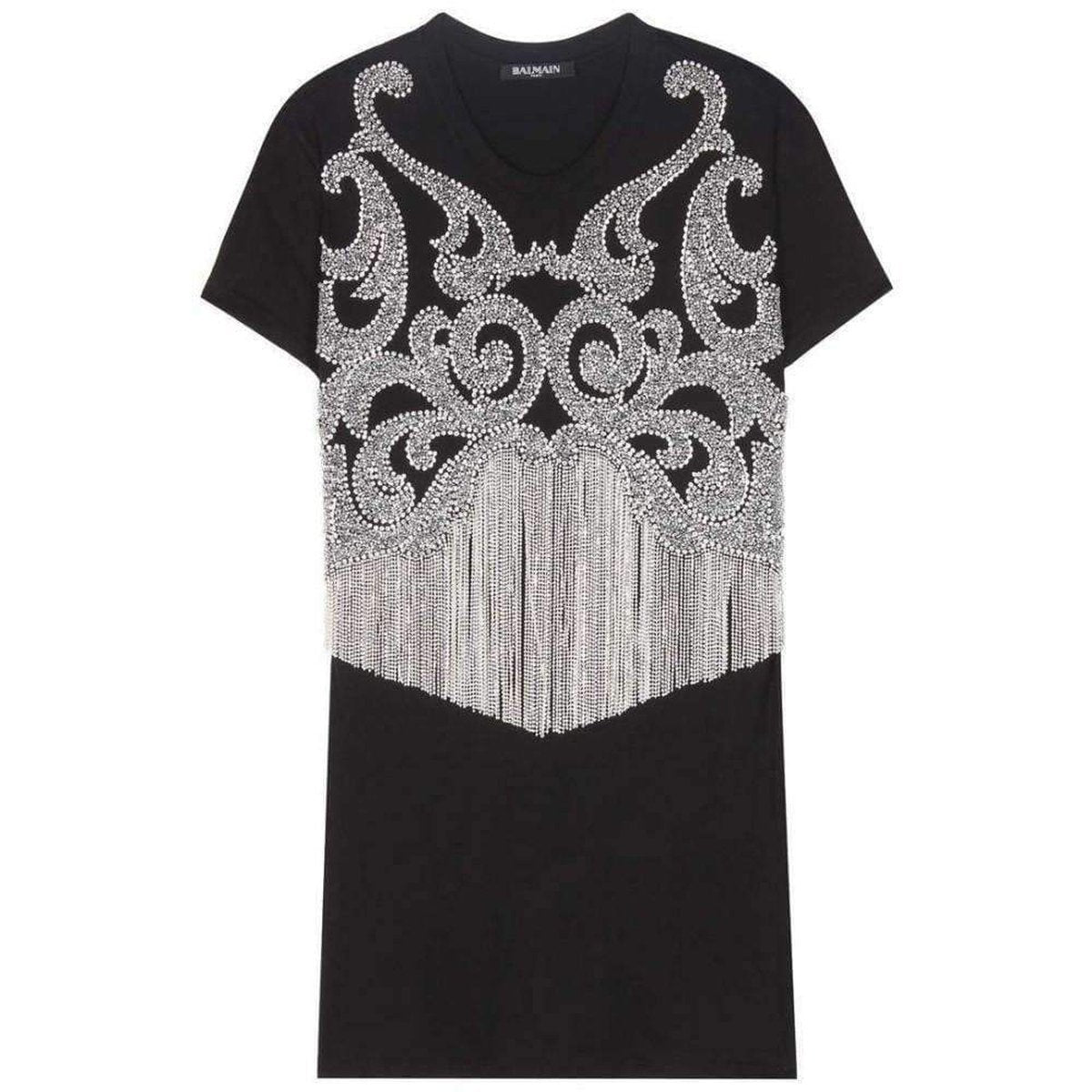 Silver crew neck front crystals and beads embroidery front crystals and metal beads fringes.