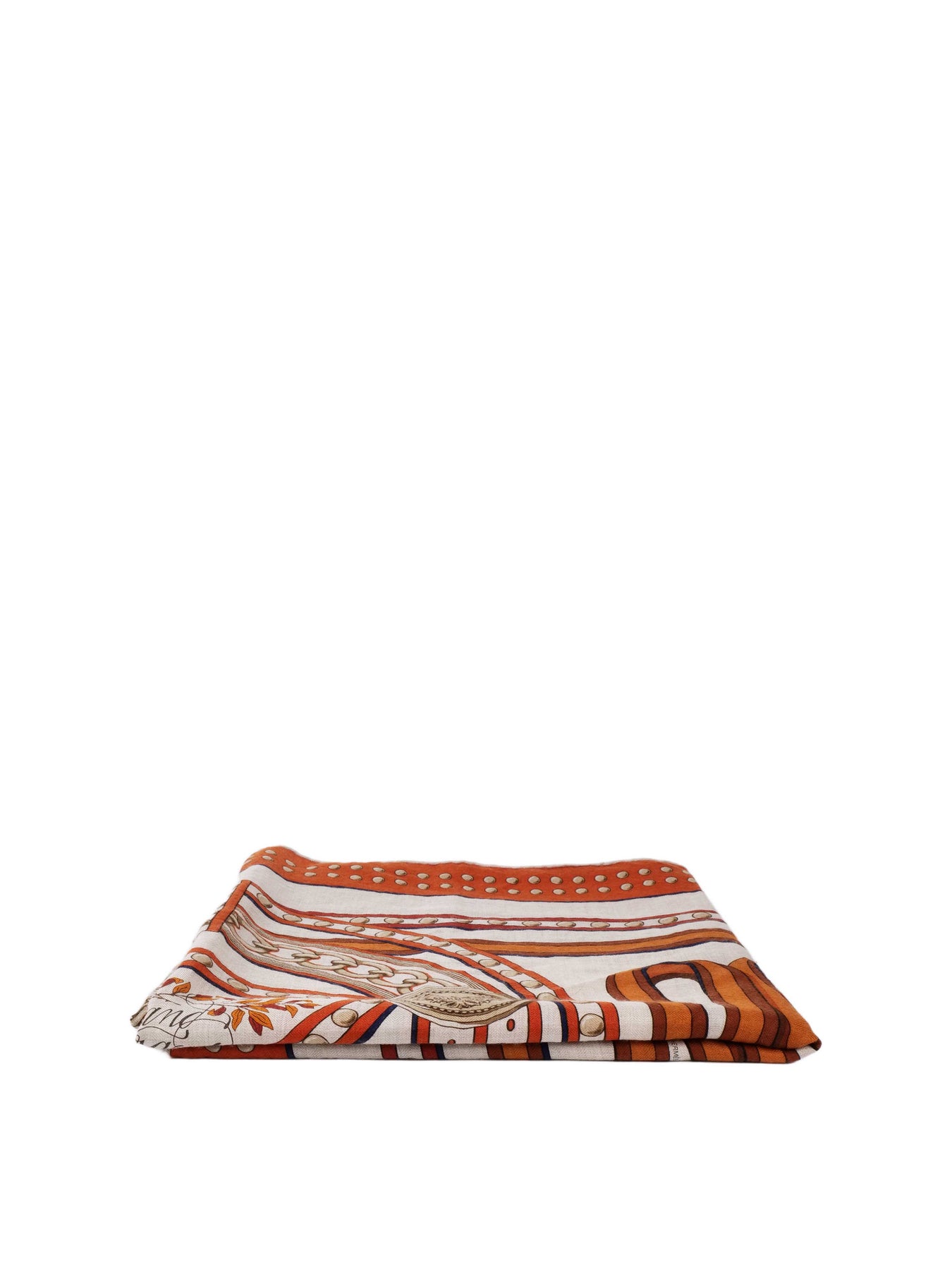 Description : Step into a stylish winter with this gorgeous orange and cream shawl from Hermes. Crafted from a combination of 70% Cashmere and 30% Silk, this shawl is the epitome of luxury.