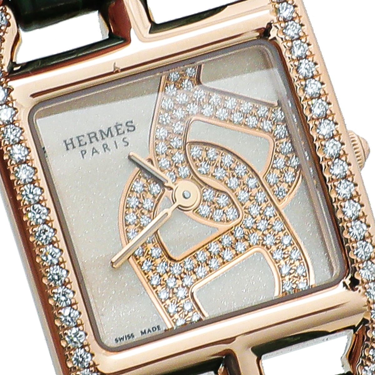 Hermes 18K Rose Gold Cape Cod Diamond Crocodile Strap 31mm Small Watch