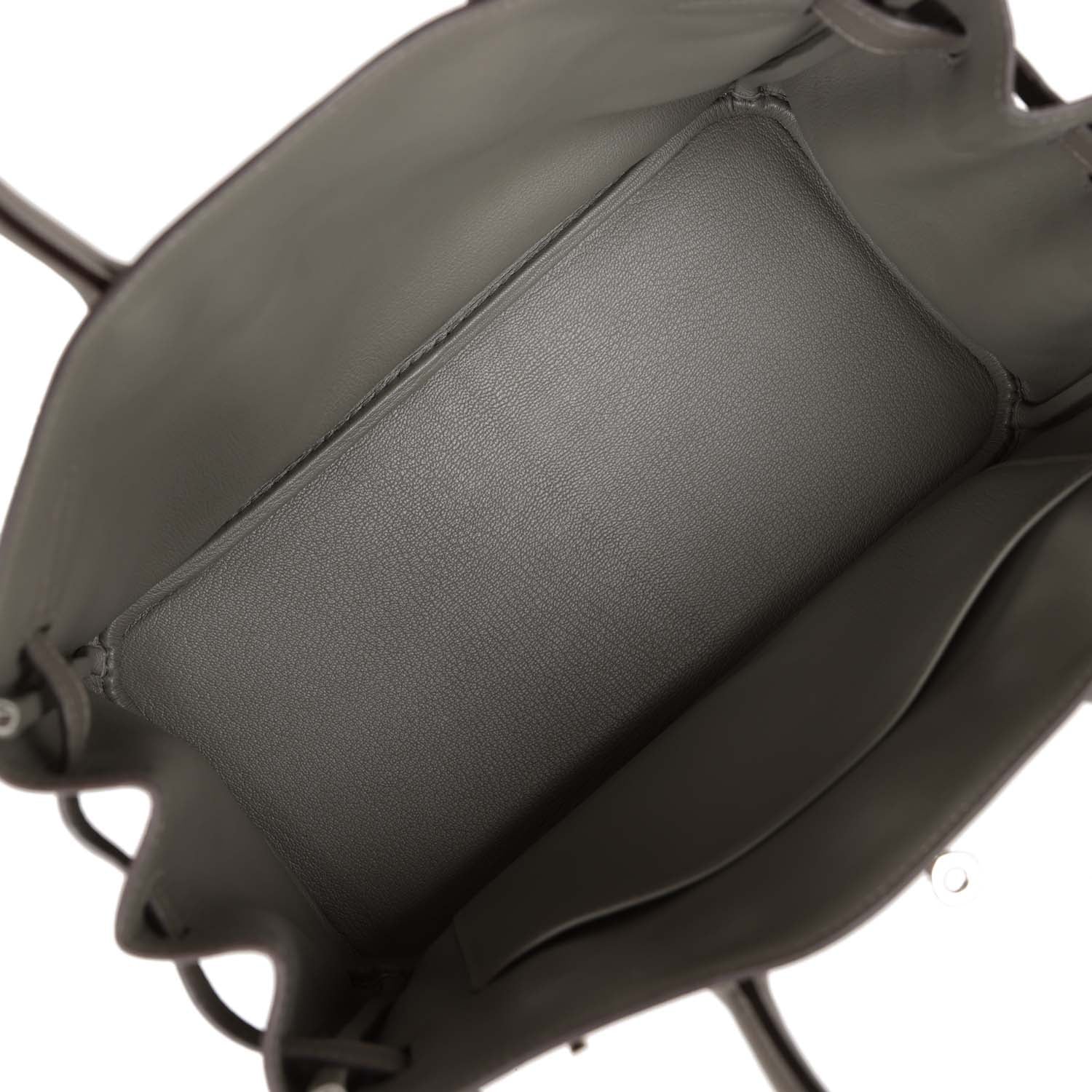 The interior is lined with Gris Meyer chevre and has one zip pocket with an Hermes engraved zipper pull and an open pocket on the opposite side.