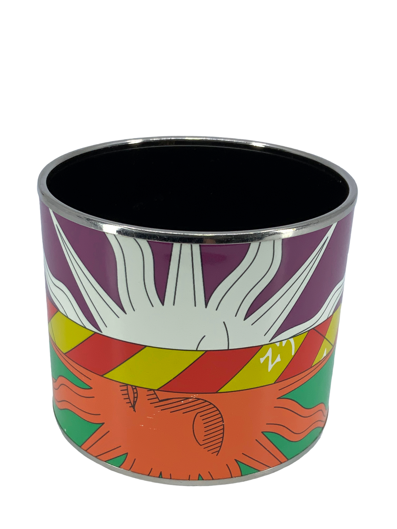 We the ity of this stunning Hermes Astrologie Extra Wide Printed Enamel Bracelet 65 crafted from beautiful mulitcolored enamel and palladium metal hardware.