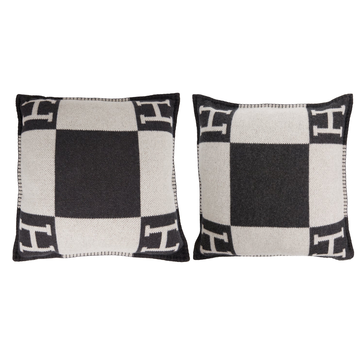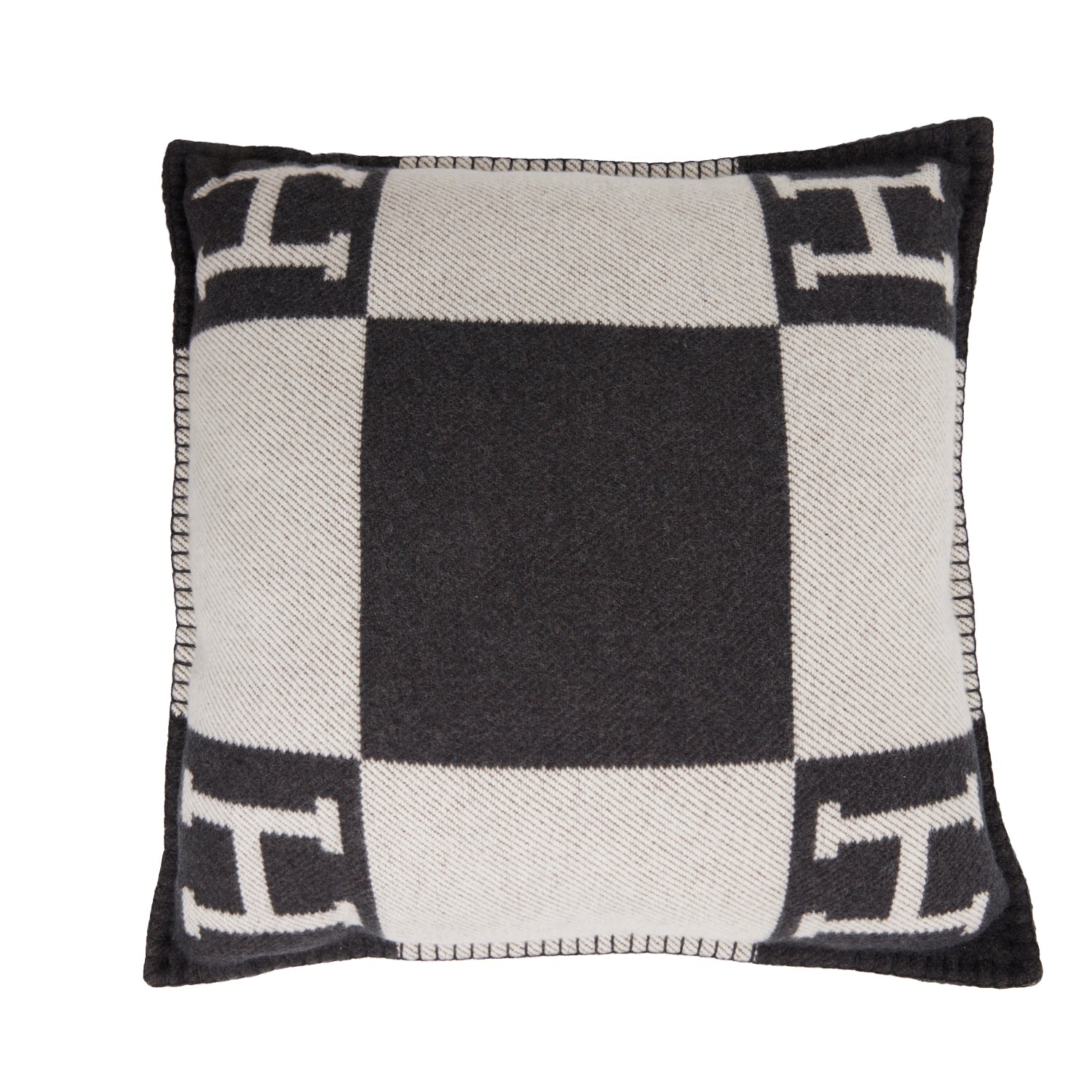 These Avalon Signature H covers are in ecru and gris fonce in the PM size and are made of 90% wool, and 10% cashmere and is removable so it can be dry cleaned.