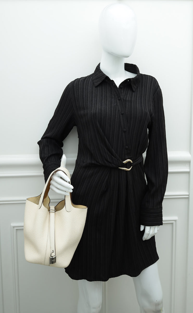 - Closure type: Open with Leather Cinch Strap with Lock Closure