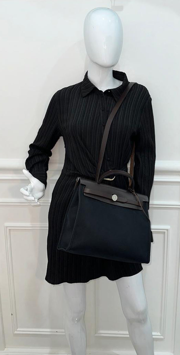 - Material: Noir Toile Vache Hunter Canvas and Chocolate Calf Leather