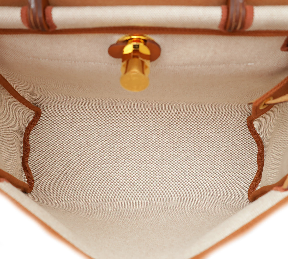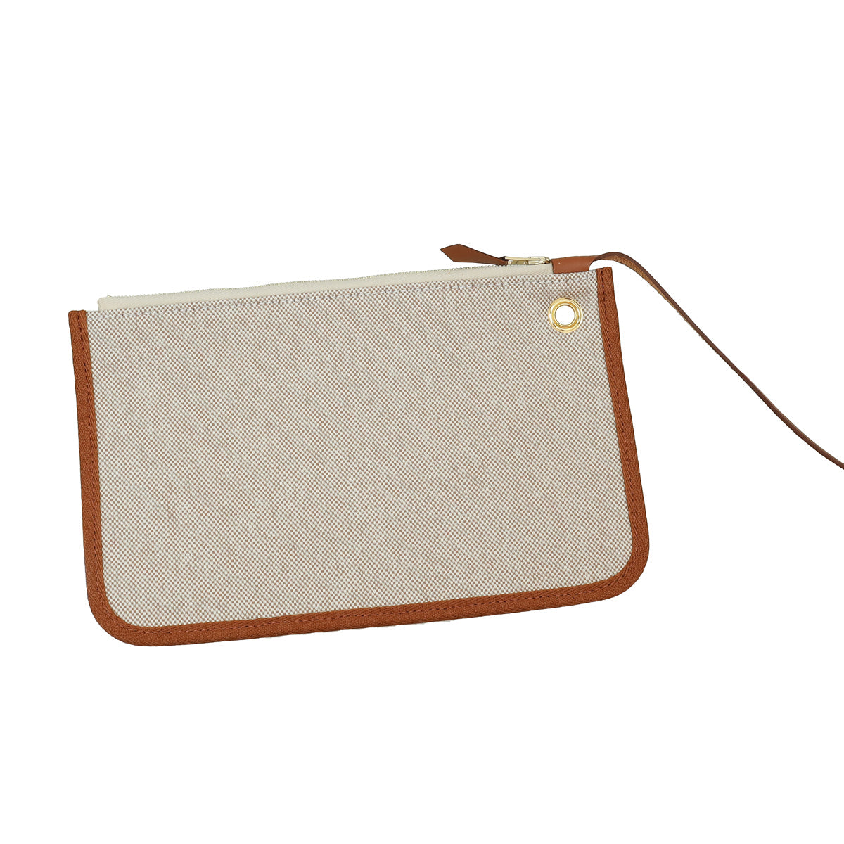 - Material: Ecru Beige Vache Hunter Canvas with Natural Leather Trim
