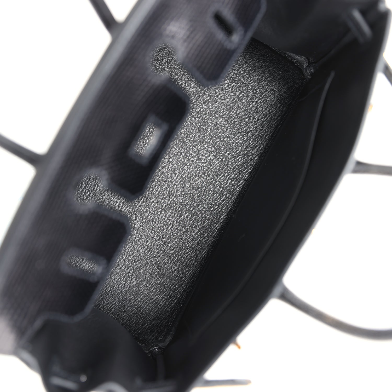 The interior is lined with Black chevre and has one zip pocket with an Hermes engraved zipper pull and an open pocket on the opposite side.