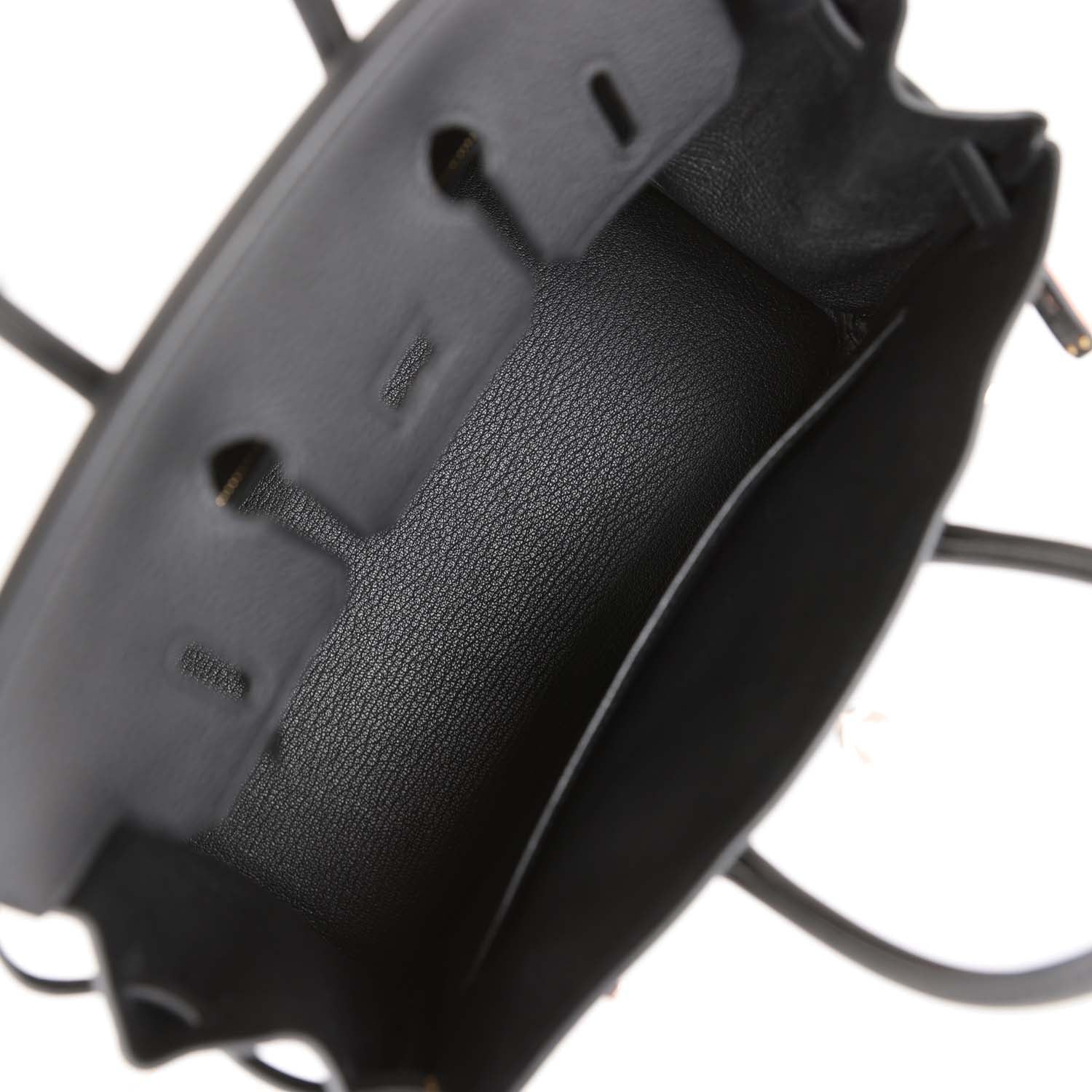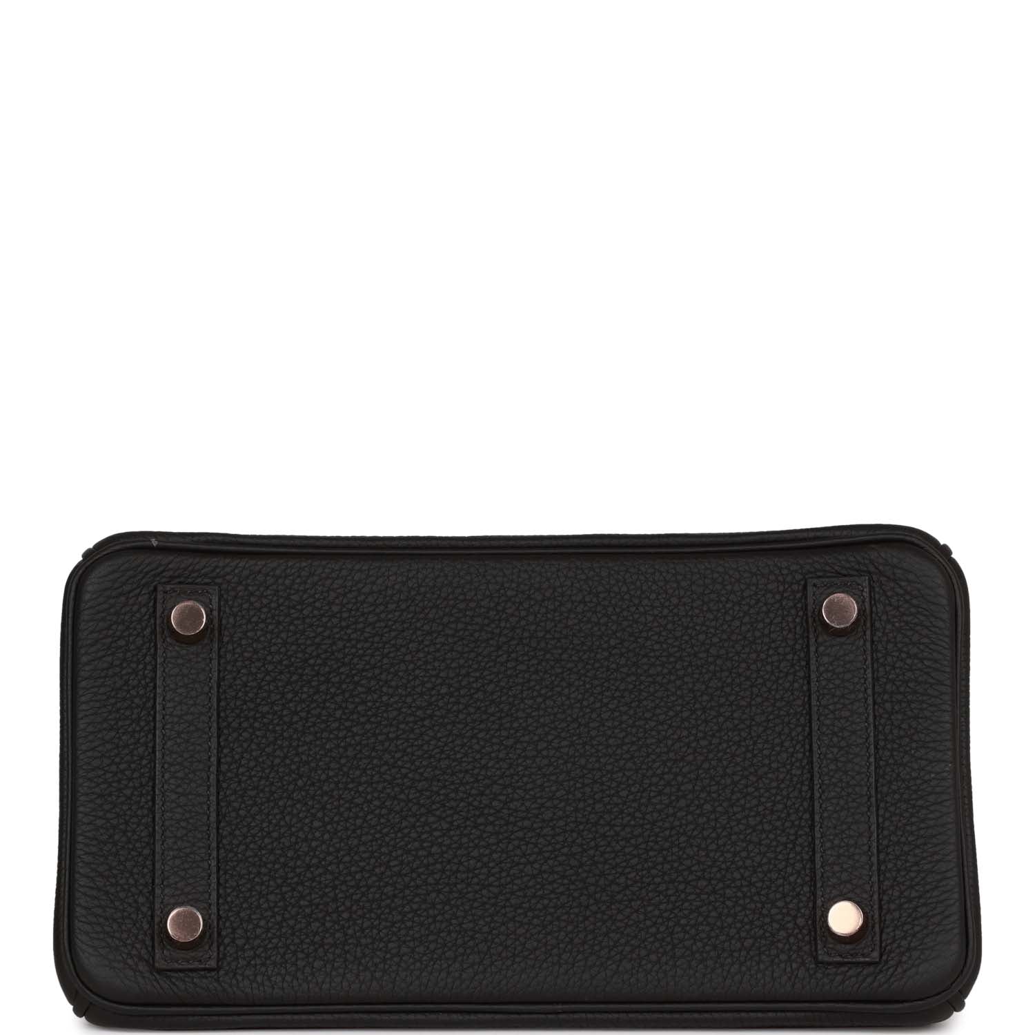 This Hermes Birkin is in Black togo leather with rose gold hardware tonal stitching, ront flap with two straps, front toggle closure, clochette with lock and two keys, and double rolled handles.