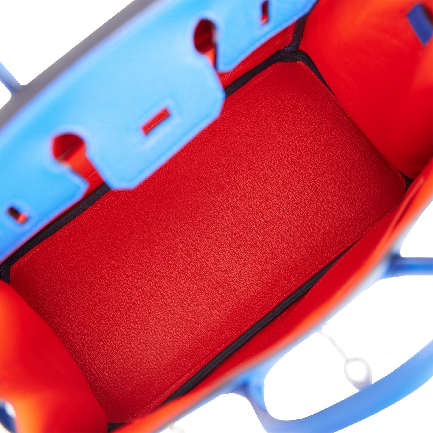The interior is lined with Capucine chevre and has one zip pocket with an Hermes engraved zipper pull and an open pocket on the opposite side.