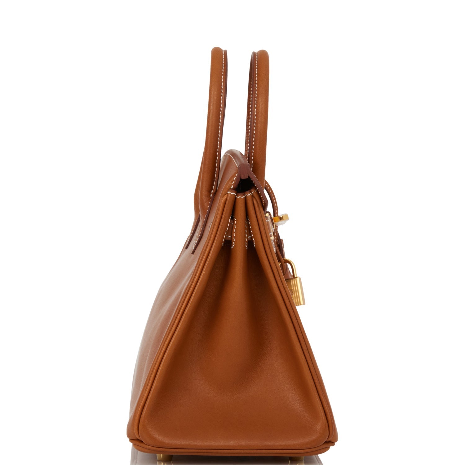 This rare Birkin is in Fauve barenia leather with gold hardware and has contrast stitching, front flap, two straps with center toggle closure, clochette with lock and two keys, and double rolled handles.