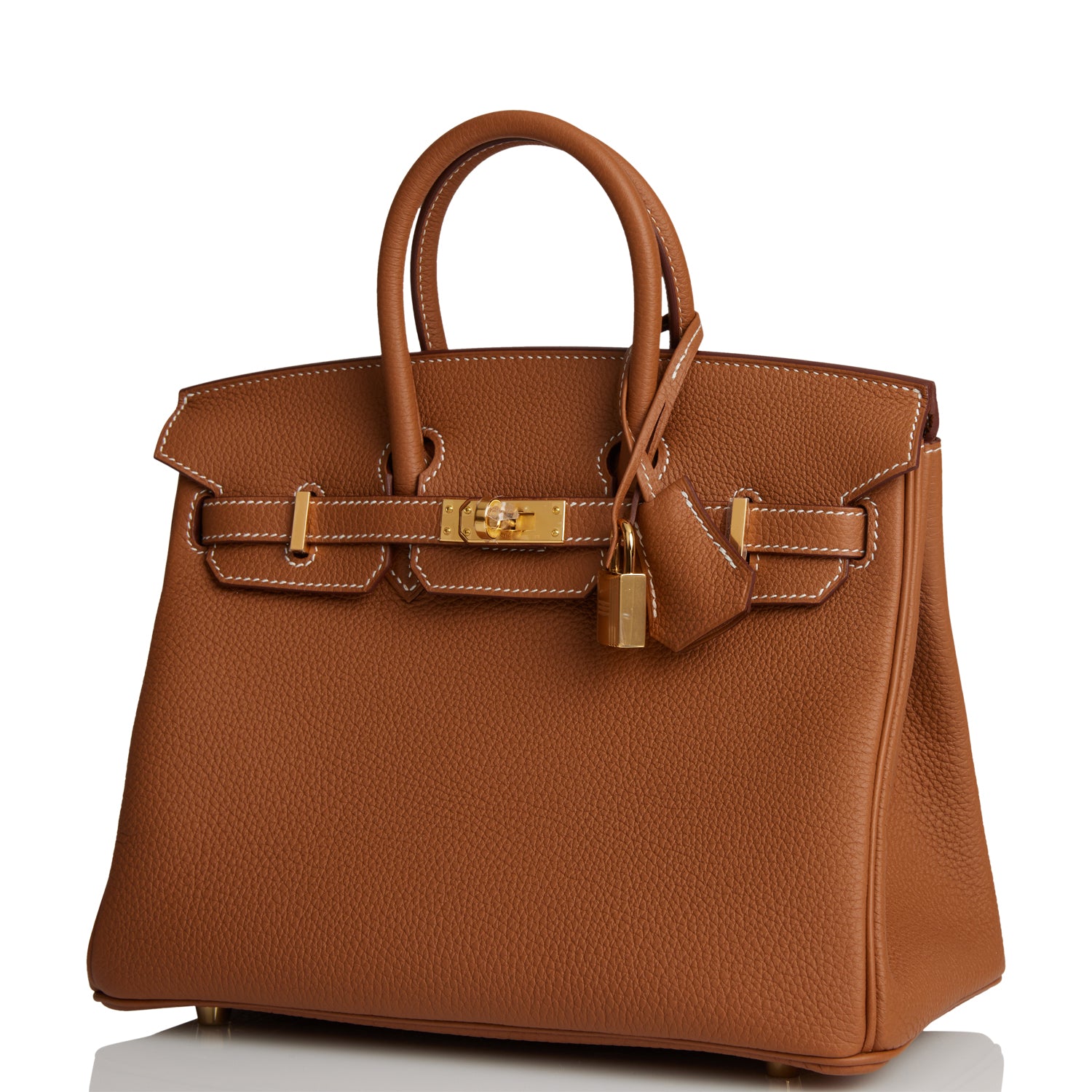 This Birkin is in Gold togo leather with gold hardware and features contrast stitching, front flap, two straps with center toggle closure, a clochette with lock and two keys and double rolled handles.