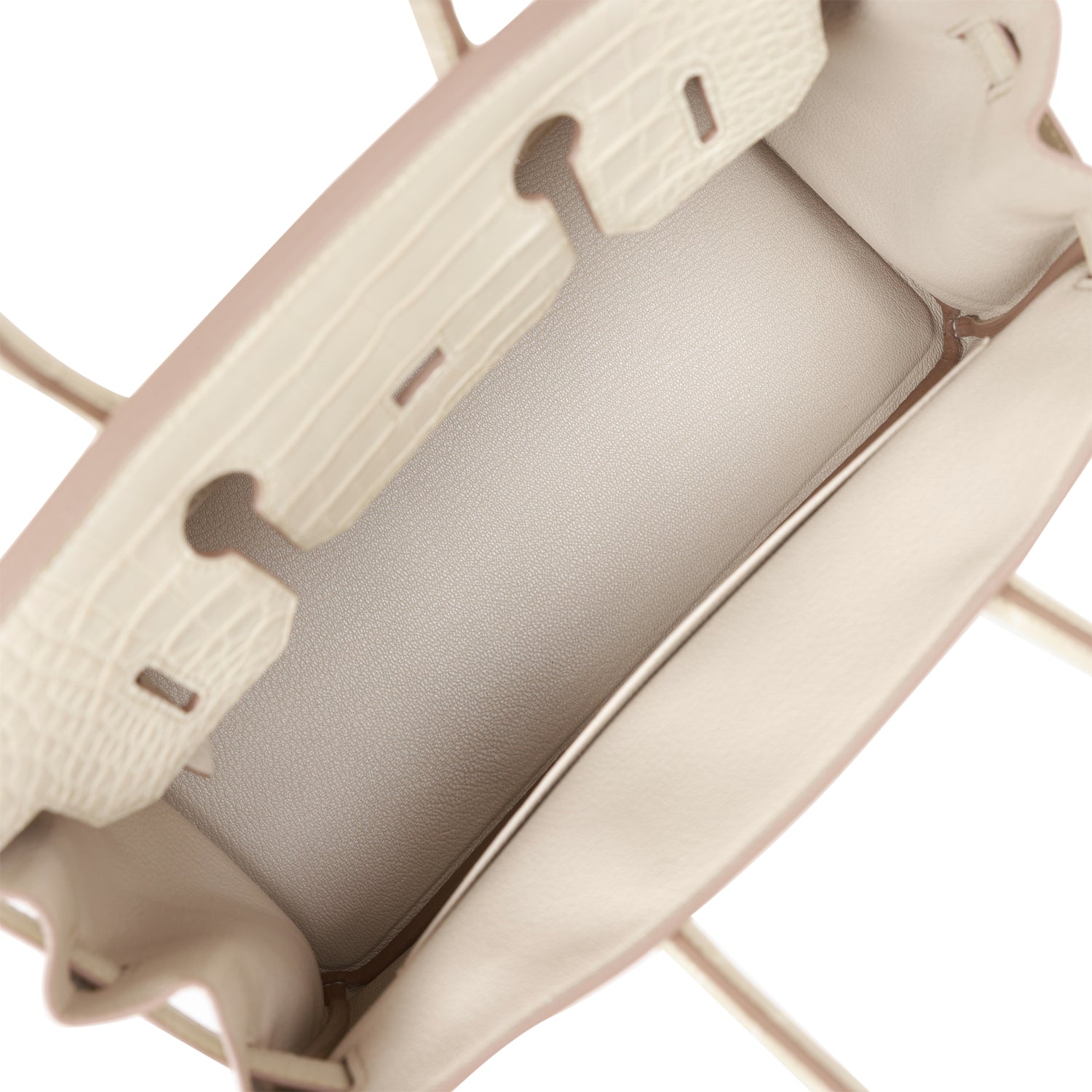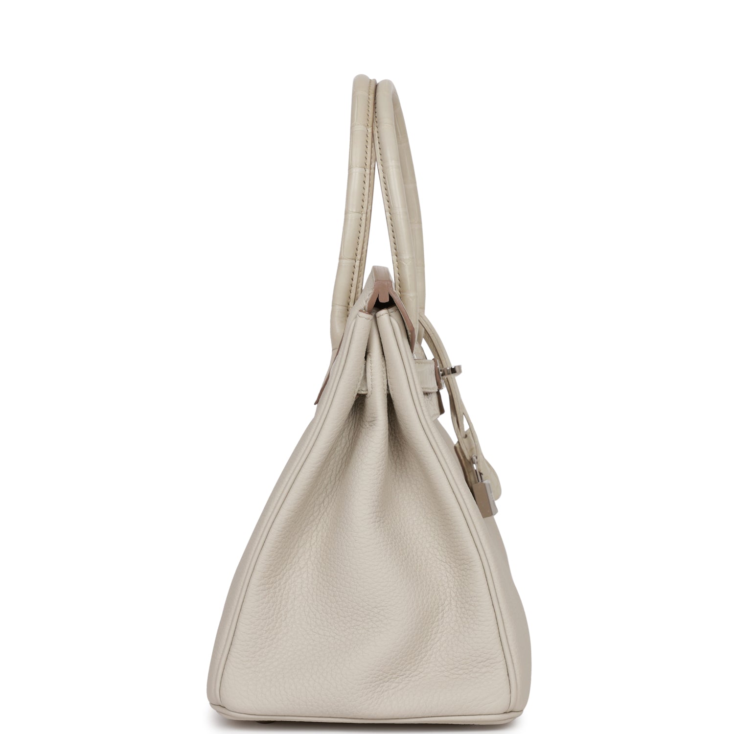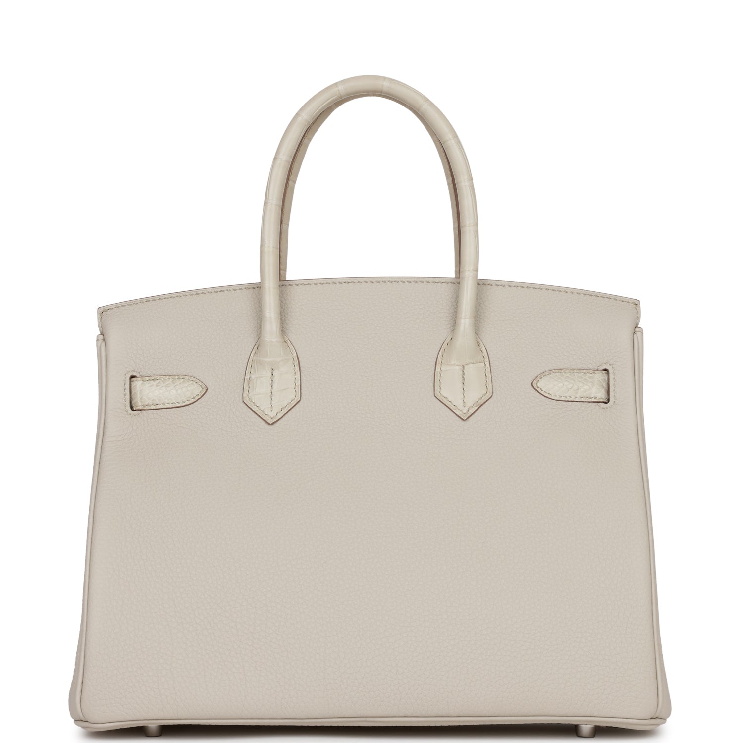 This Birkin "Touch" is in Beton matte alligator and Beton togo leather with palladium hardware and has tonal stitching, two straps with front toggle closure, clochette with lock and two keys and double rolled crocodile handles.