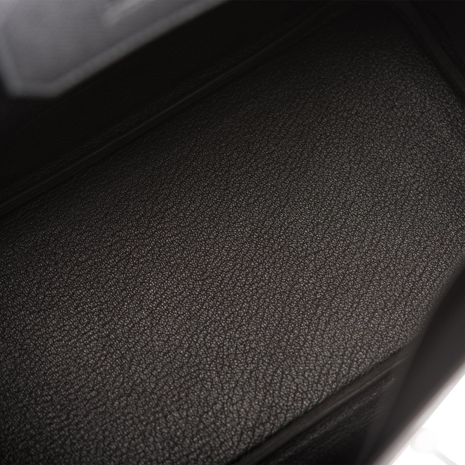 This Birkin is in Black epsom leather with palladium hardware and has tonal stitching, front flap, two straps with center toggle closure, clochette with lock and two keys, and double rolled handles.