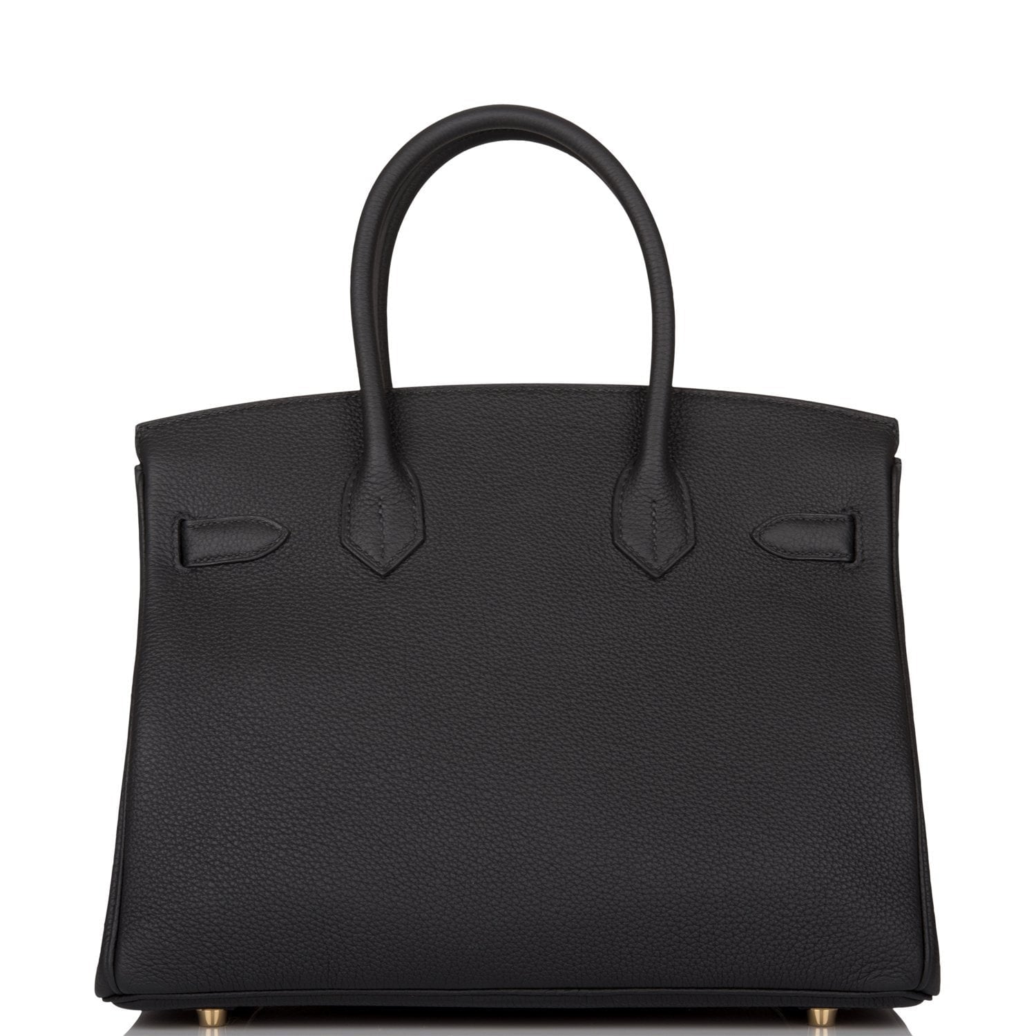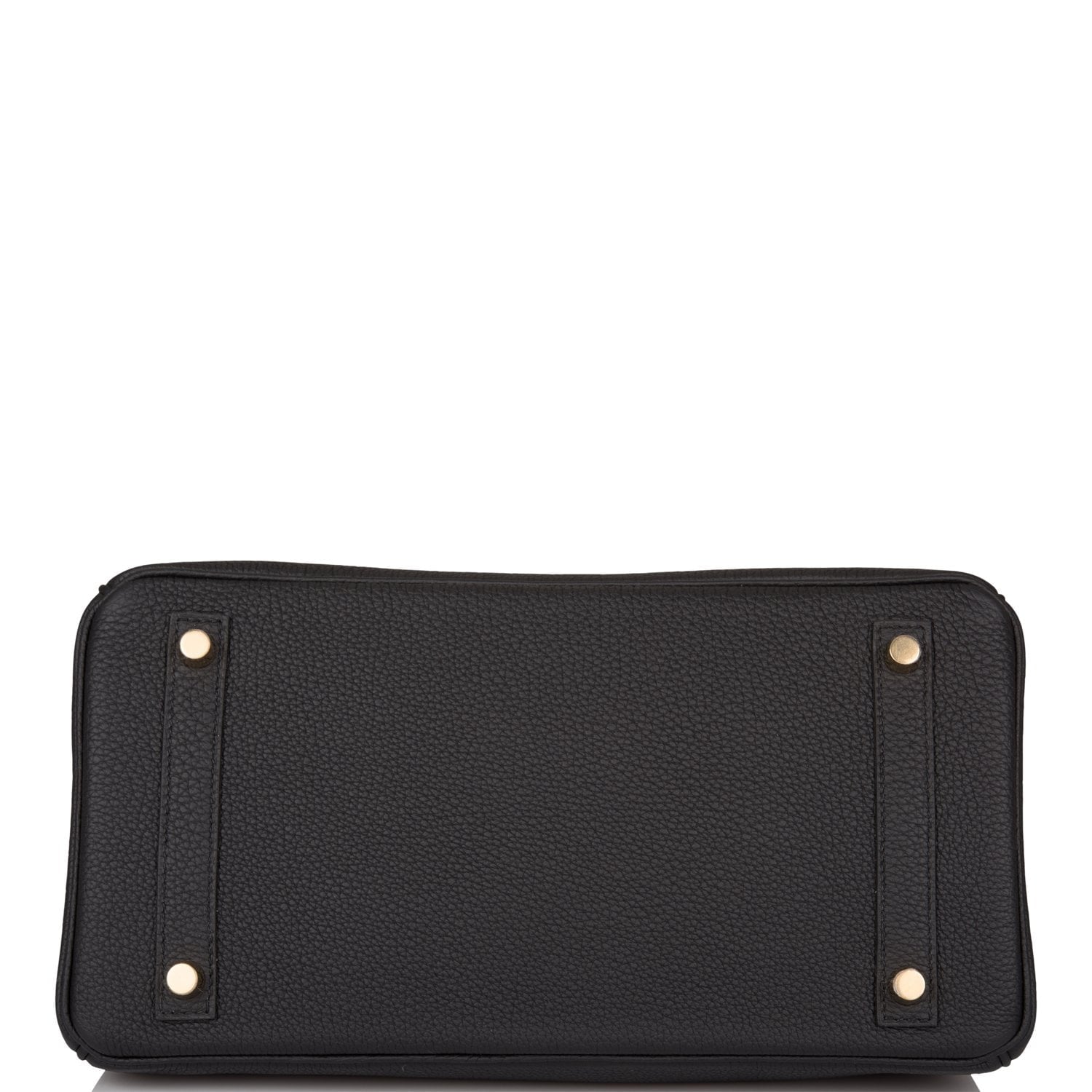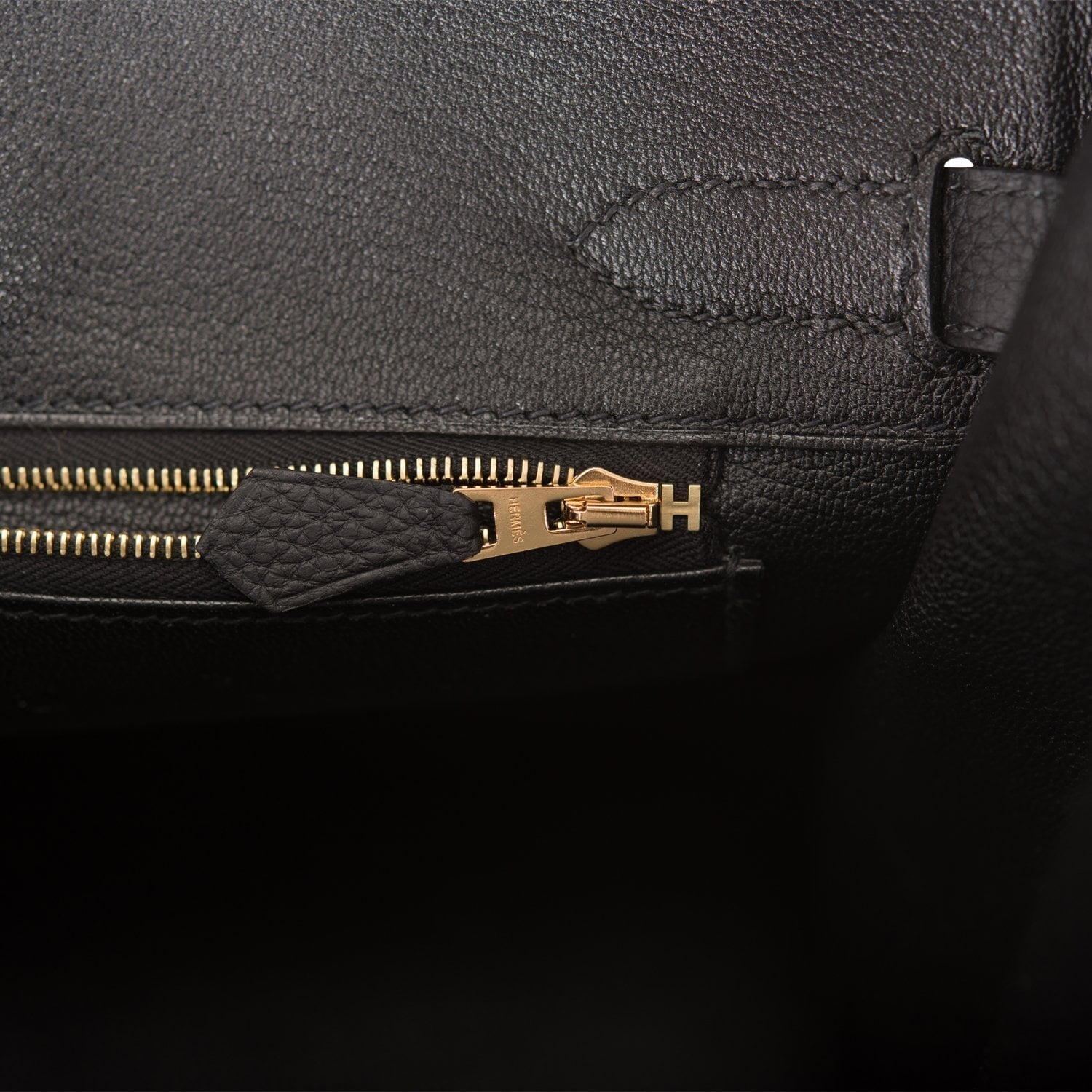 This Birkin is in Black togo leather with gold hardware and has tonal stitching, front flap, two straps with center toggle closure, clochette with lock and two keys, and double rolled handles.
