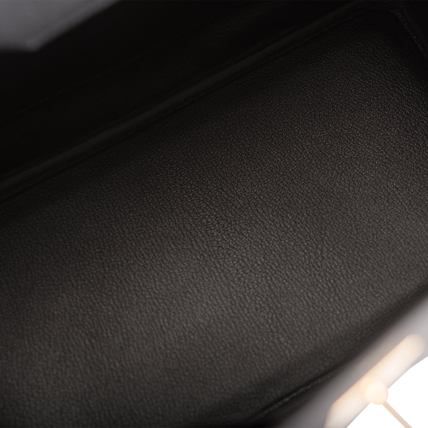 The interior is lined with black chevre and has one zip pocket with an Hermes engraved zipper pull and an open pocket on the opposite side.