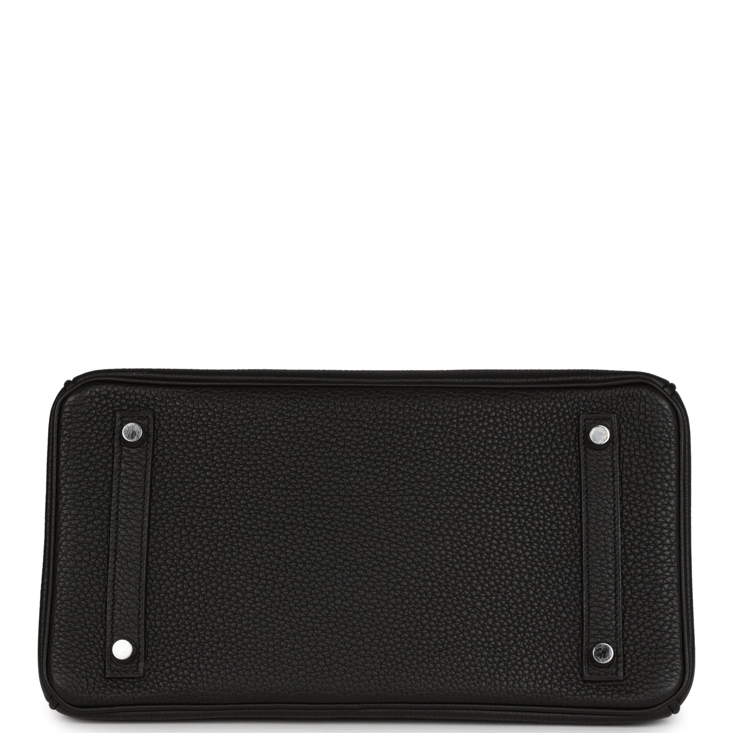 This Birkin is in Black togo leather with palladium hardware and has tonal stitching, front flap, two straps with center toggle closure, clochette with lock and two keys, and double rolled handles.
