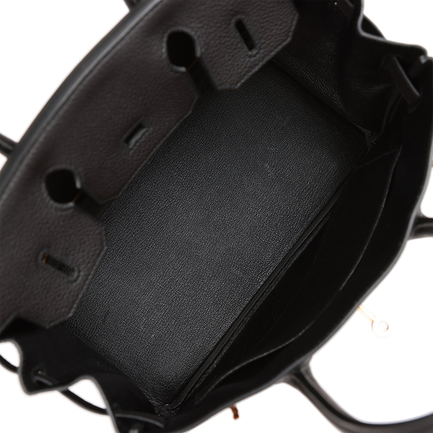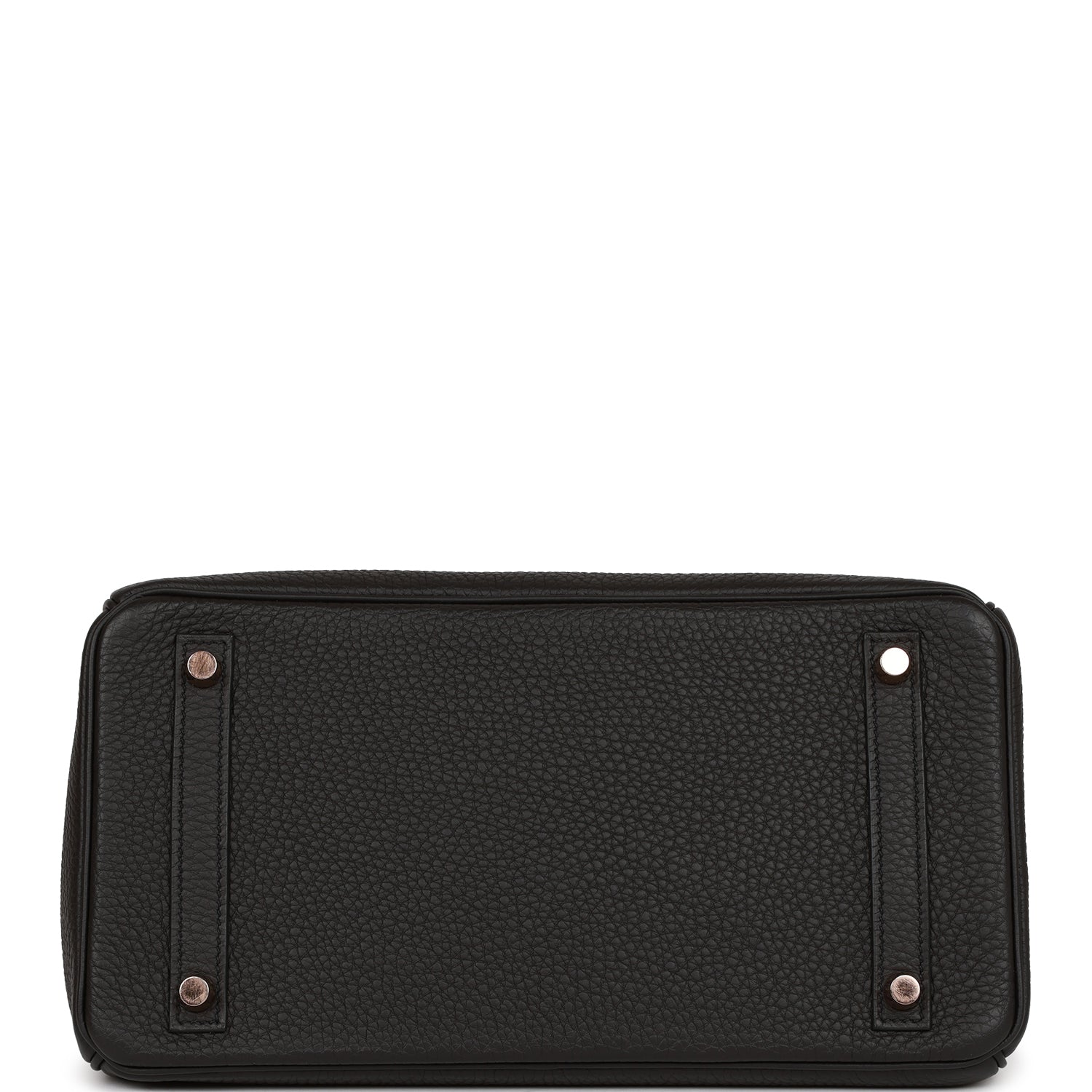 This Birkin is in Black togo leather with rose gold hardware and has tonal stitching, front flap, two straps with center toggle closure, clochette with lock and two keys, and double rolled handles.