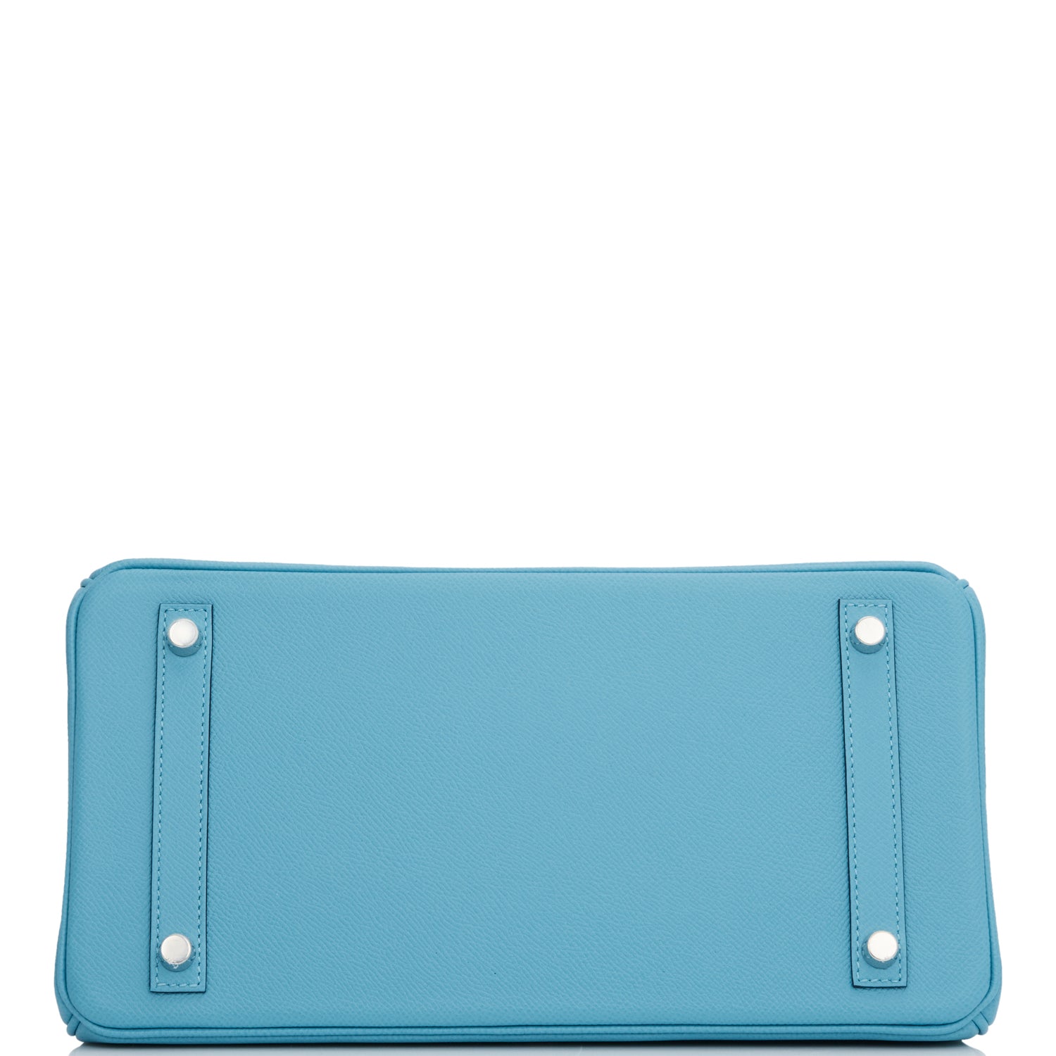 This Birkin is in Bleu du Nord epsom leather with palladium hardware and has tonal stitching, front flap, two straps with center toggle closure, clochette with lock and two keys, and double rolled handles.