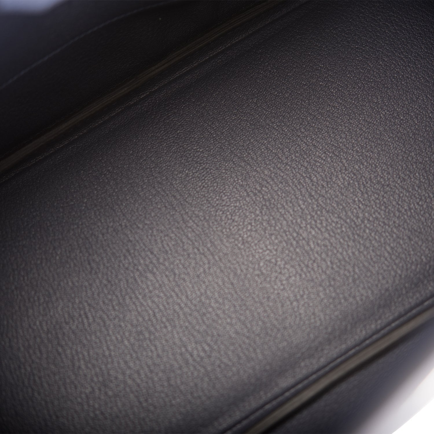 The interior is lined with Bleu Nuit chevre and has one zip pocket with an Hermes engraved zipper pull and an open pocket on the opposite side.