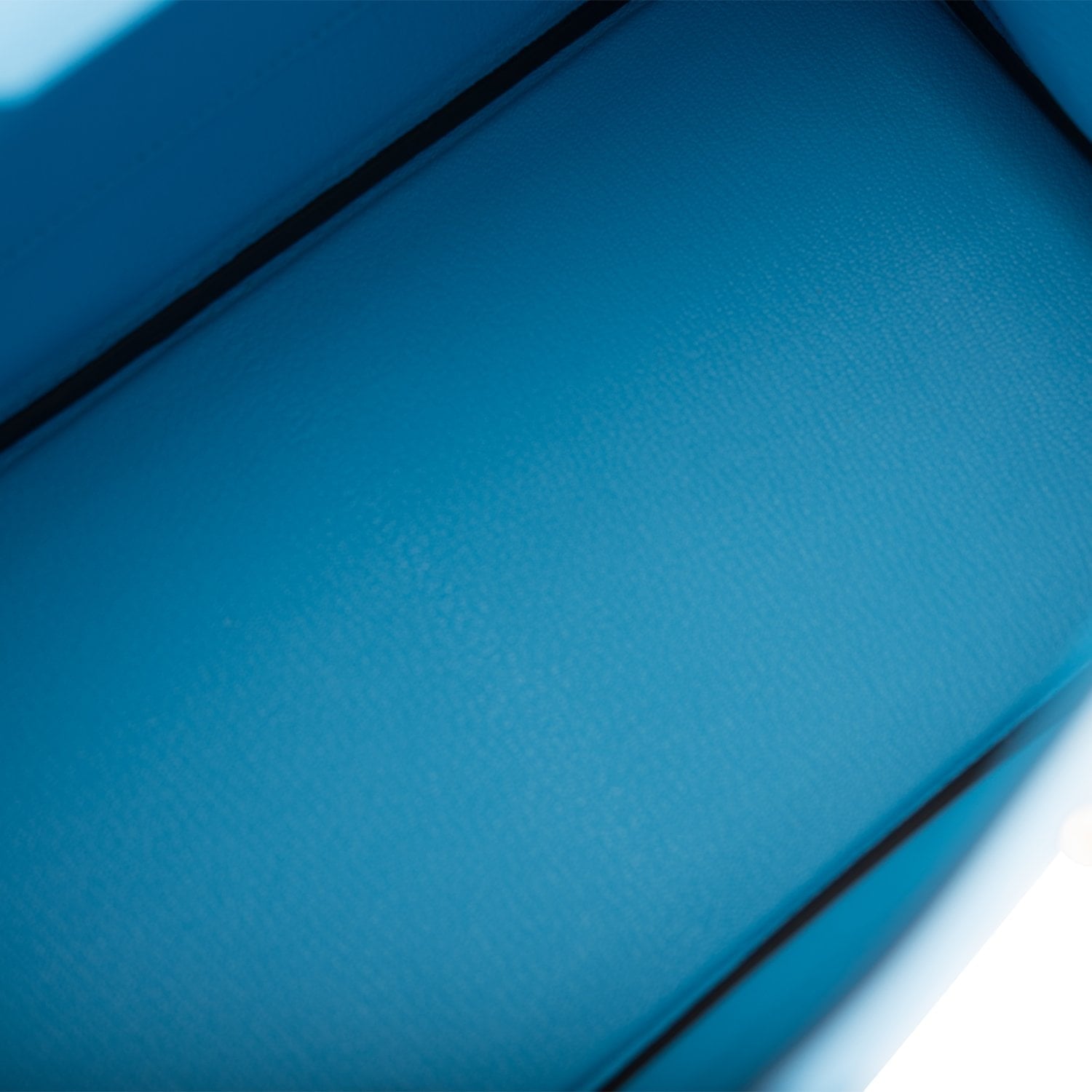 The interior is lined with Celeste chevre and has one zip pocket with an Hermes engraved zipper pull and an open pocket on the opposite side.