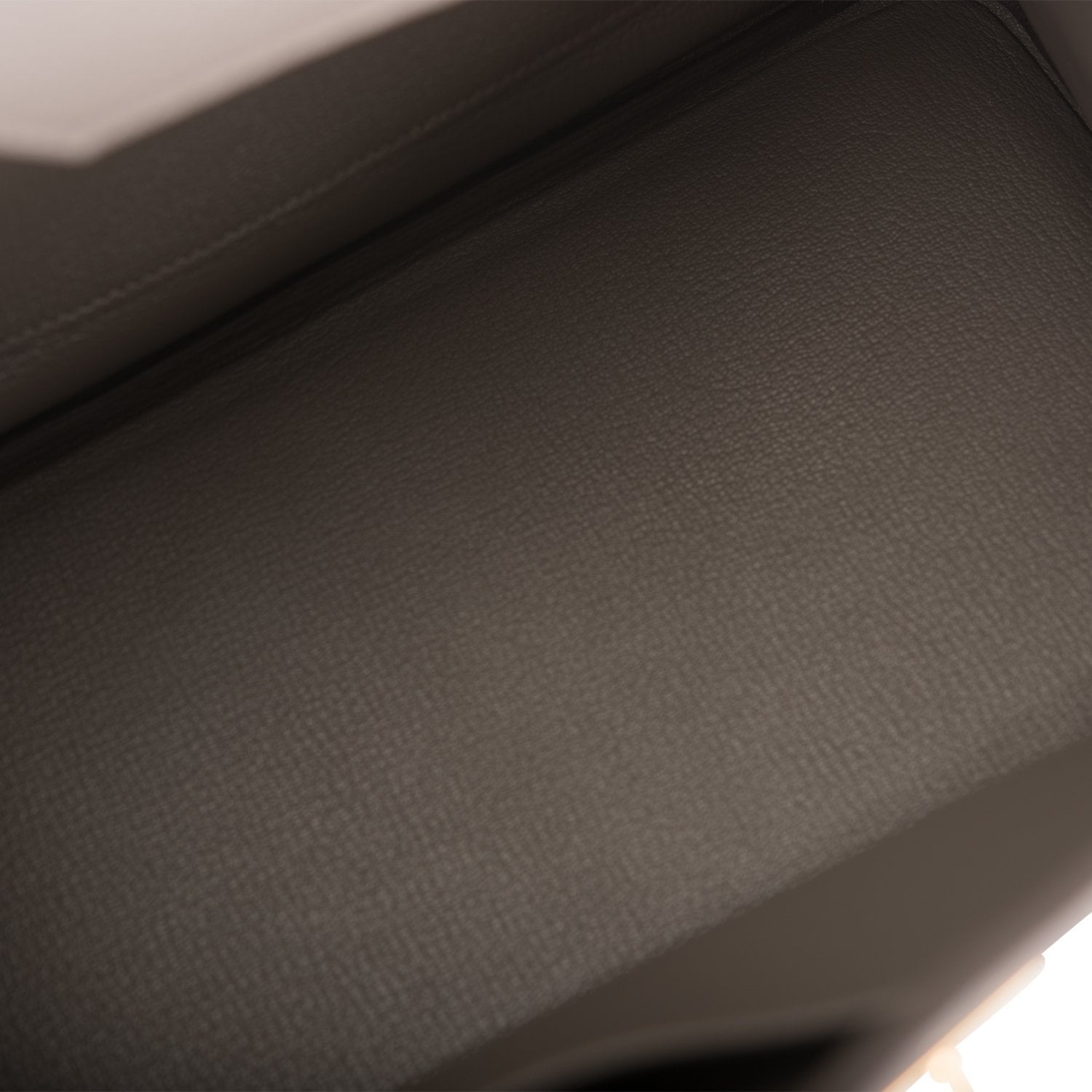 The interior is lined with Etain chevre and has one zip pocket with an Hermes engraved zipper pull and an open pocket on the opposite side.