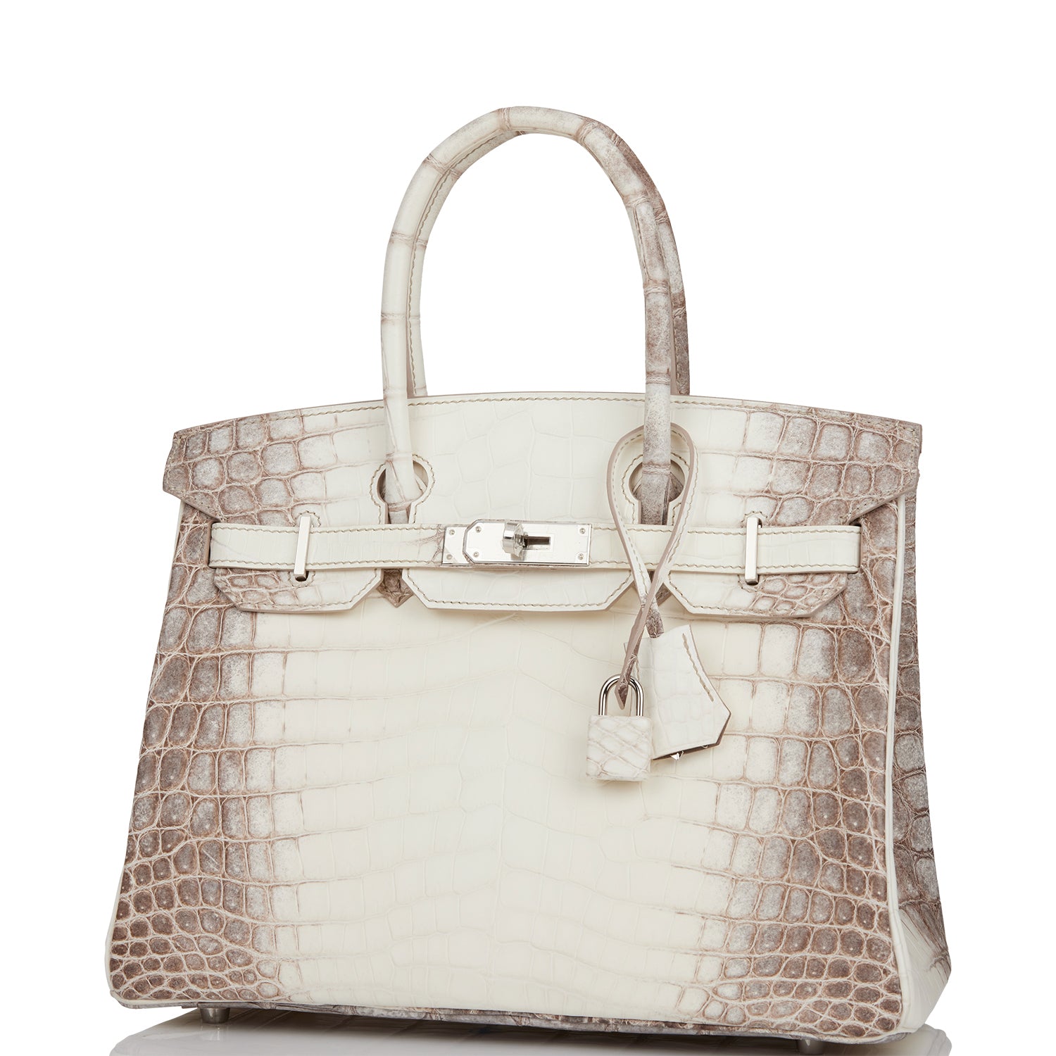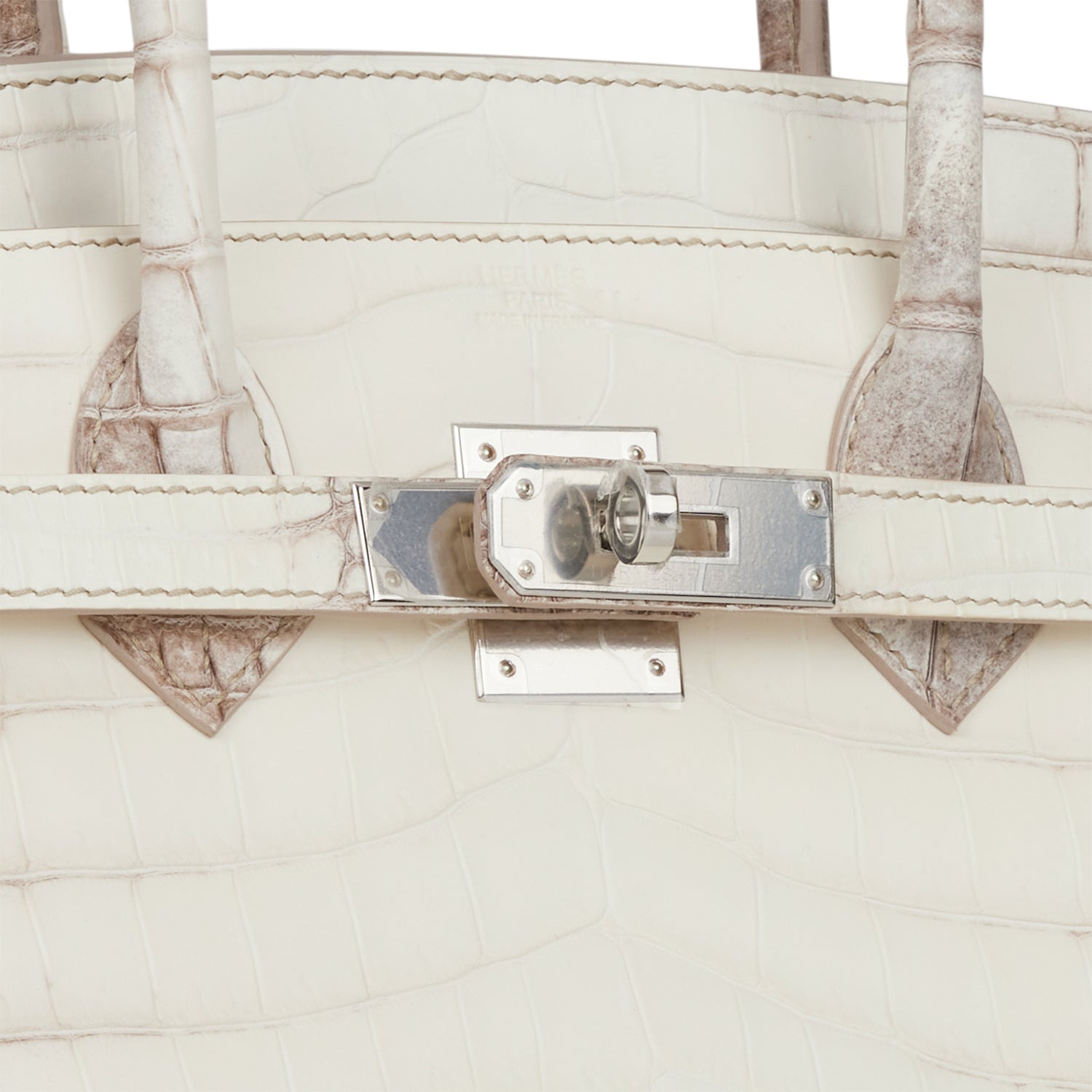 This Himalaya Birkin is in Niloticus crocodile with palladium hardware and has tonal stitching, front flap, two straps with center toggle closure, clochette with lock and two keys, and double rolled handles.
