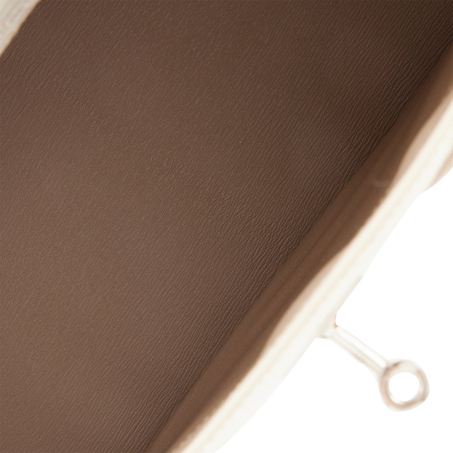 The interior is lined with Gris Perle chevre and has one zip pocket with an Hermes engraved zipper pull and an open pocket on the opposite side.