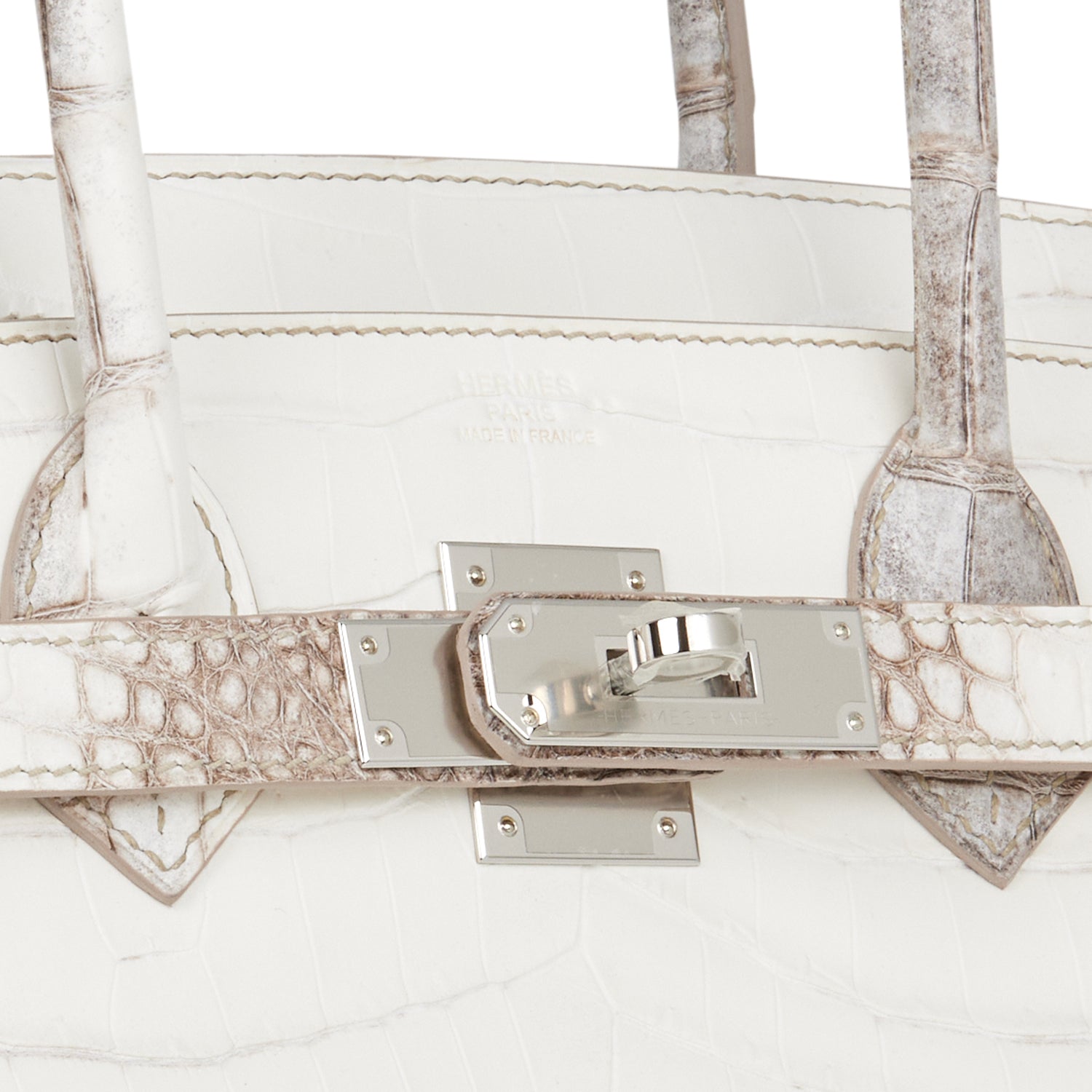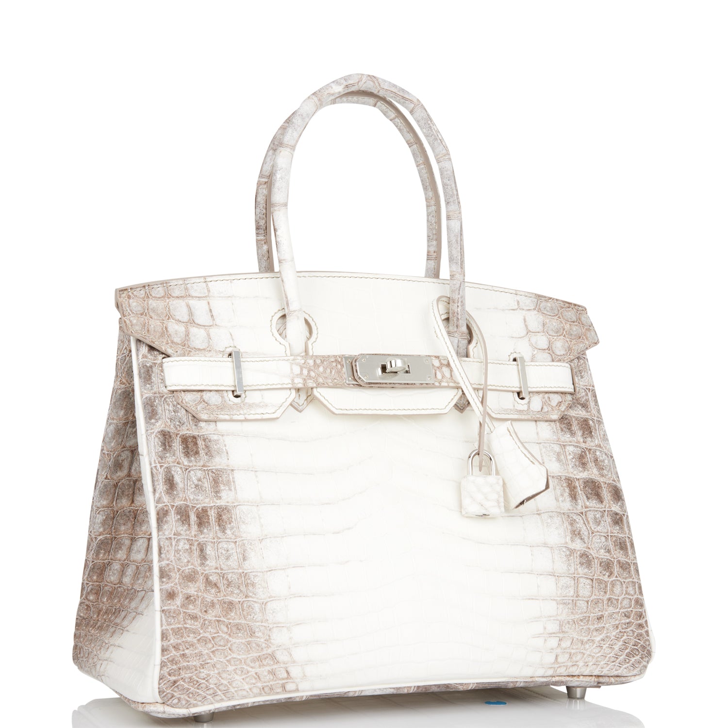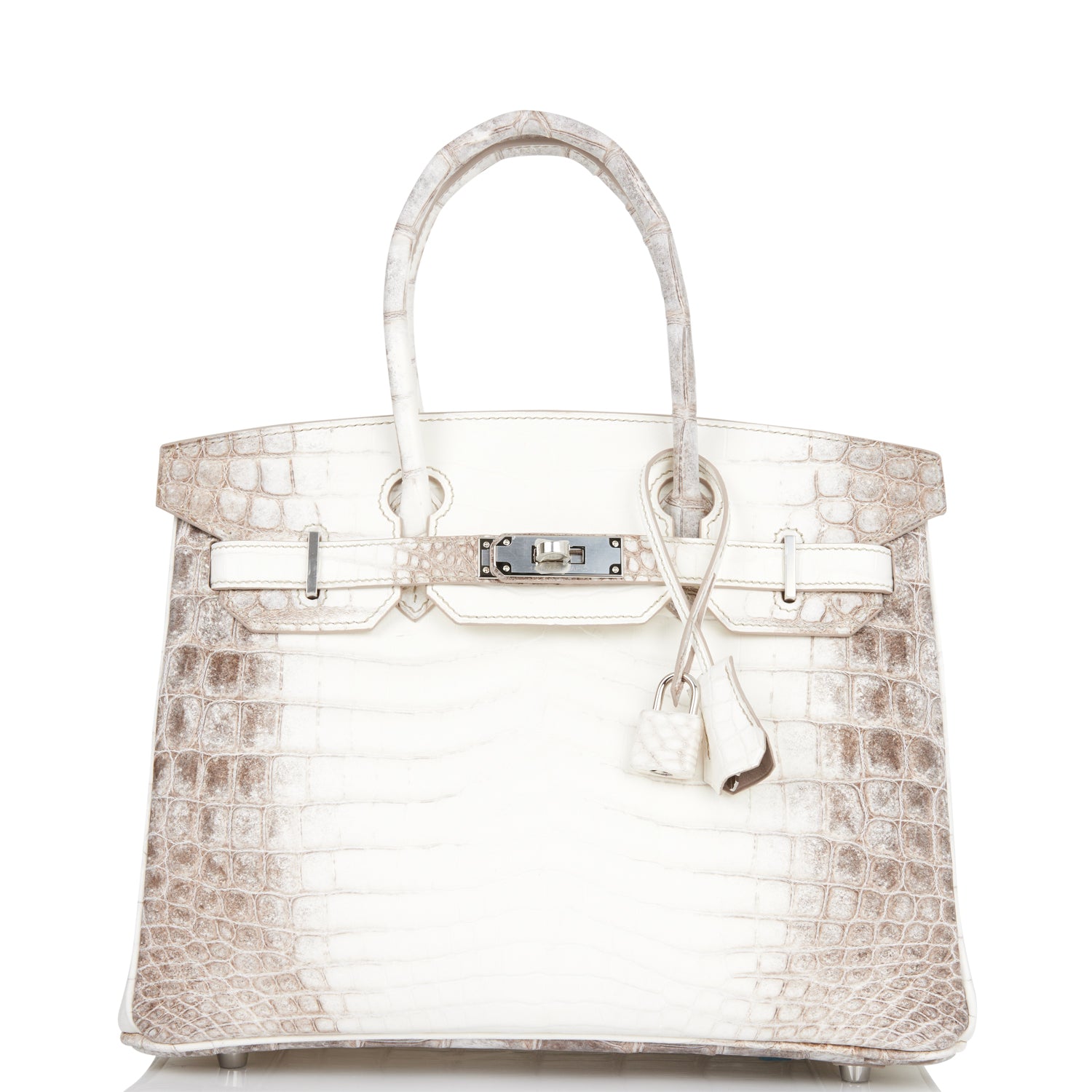 This Himalaya Birkin is in Niloticus crocodile with palladium hardware and has tonal stitching, front flap, two straps with center toggle closure, clochette with lock and two keys, and double rolled handles.