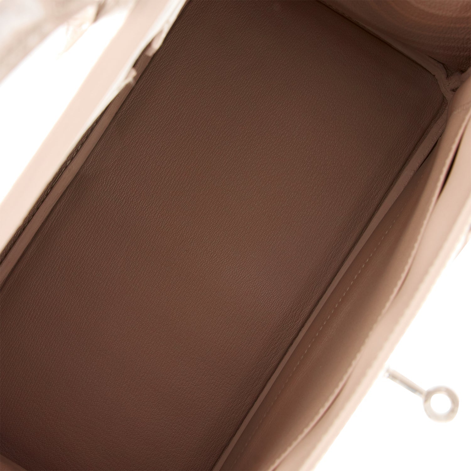 The interior is lined with Gris Perle chevre and has one zip pocket with an Hermes engraved zipper pull and an open pocket on the opposite side.
