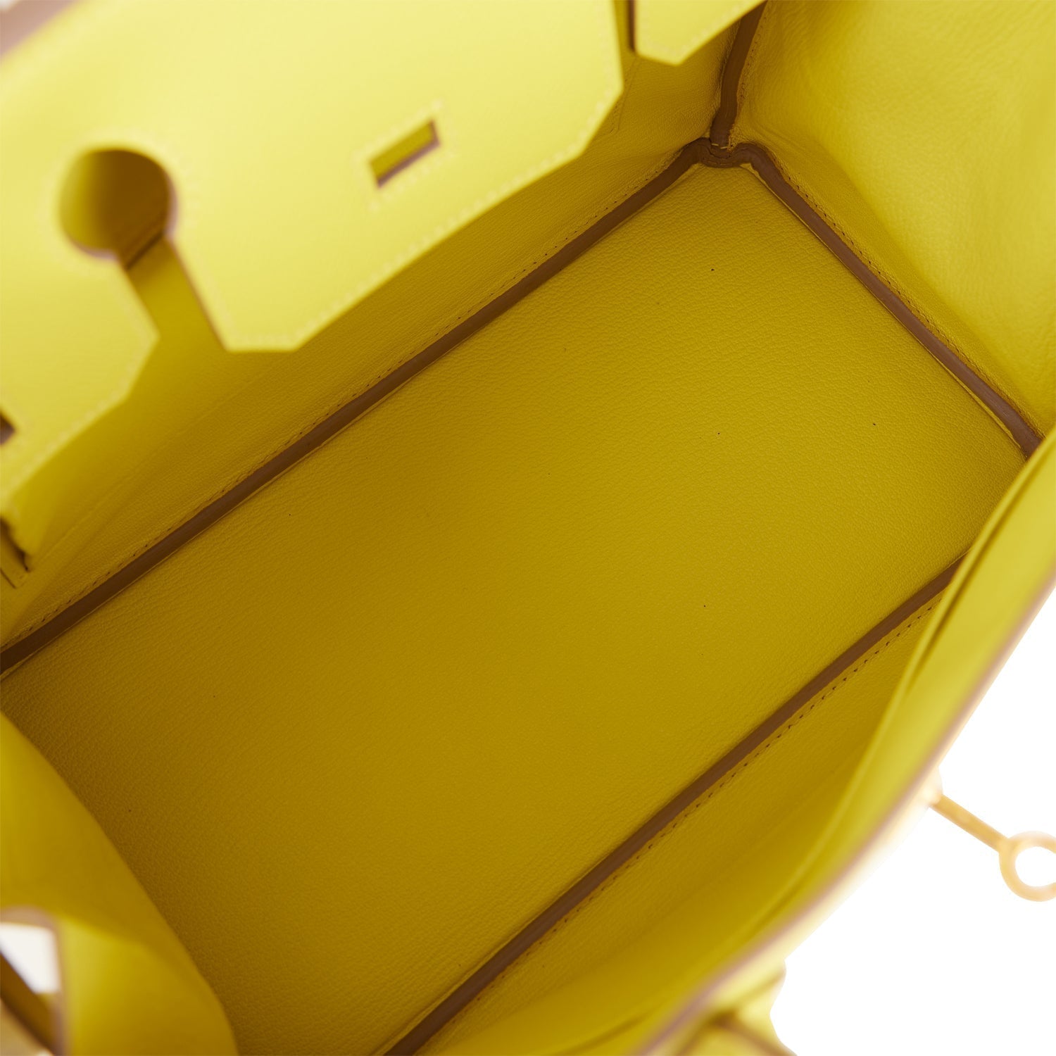 This Birkin is in Lime epsom leather with gold hardware and has tonal stitching, two straps with front toggle closure, clochette with lock and two keys and double rolled handles.
