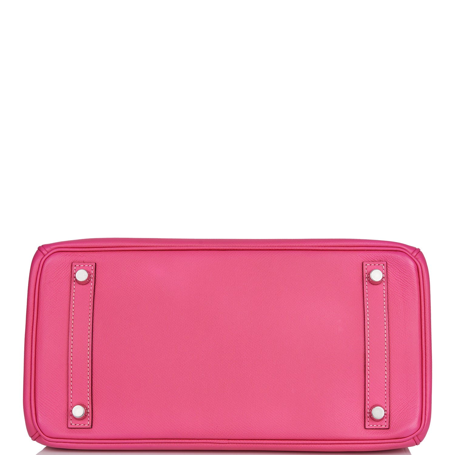 This Candy Birkin is in Rose Tyrien epsom leather with palladium hardware and has contrast stitching, a front toggle closure, a clochette with lock and two keys, and double rolled handles.