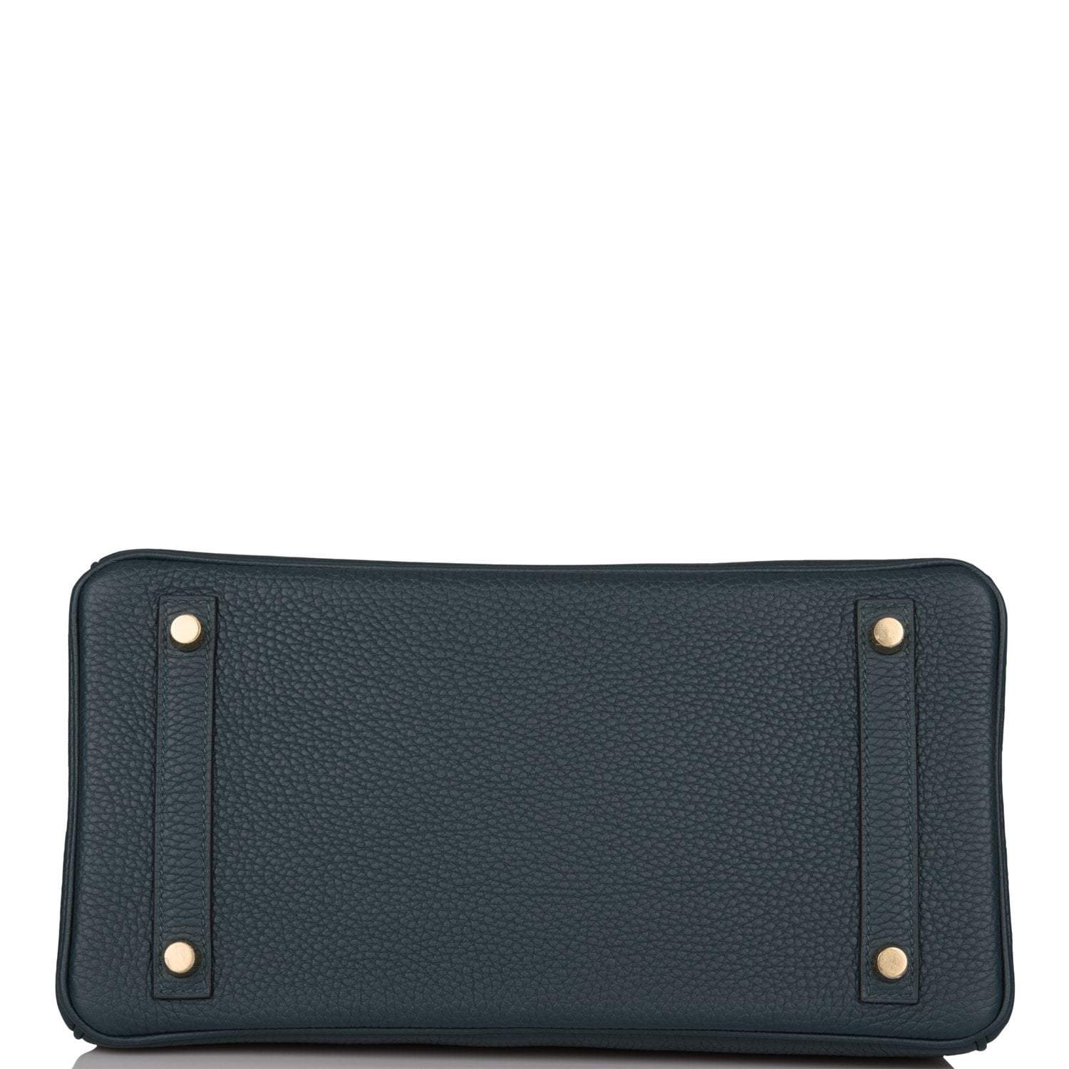 This Birkin is in Vert Cypress clemence leather with gold hardware and has tonal stitching, front flap, two straps with center toggle closure, clochette with lock and two keys and double rolled handles.