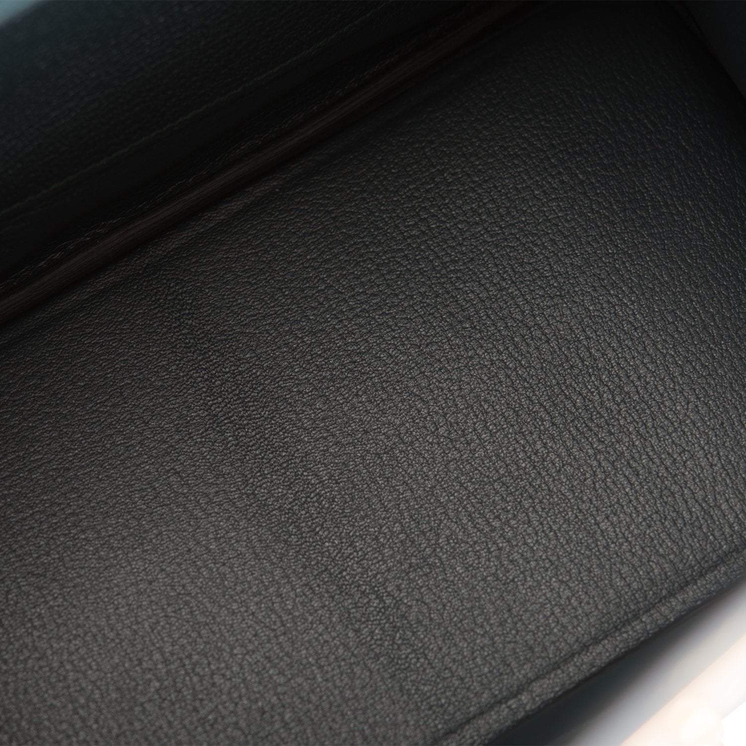The interior is lined with Vert Cypress chevre and has one zip pocket with an Hermes engraved zipper pull and an open pocket on the opposite side.