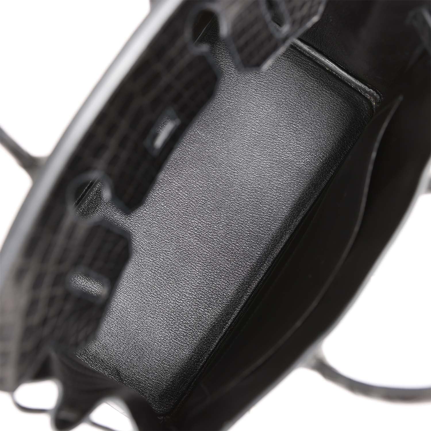 The interior is lined with black chevre and has one zip pocket with an Hermes engraved zipper pull and an open pocket on the opposite side.