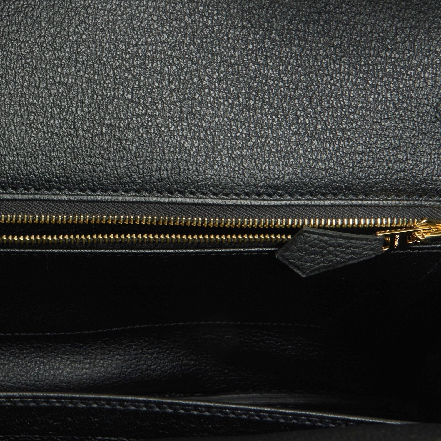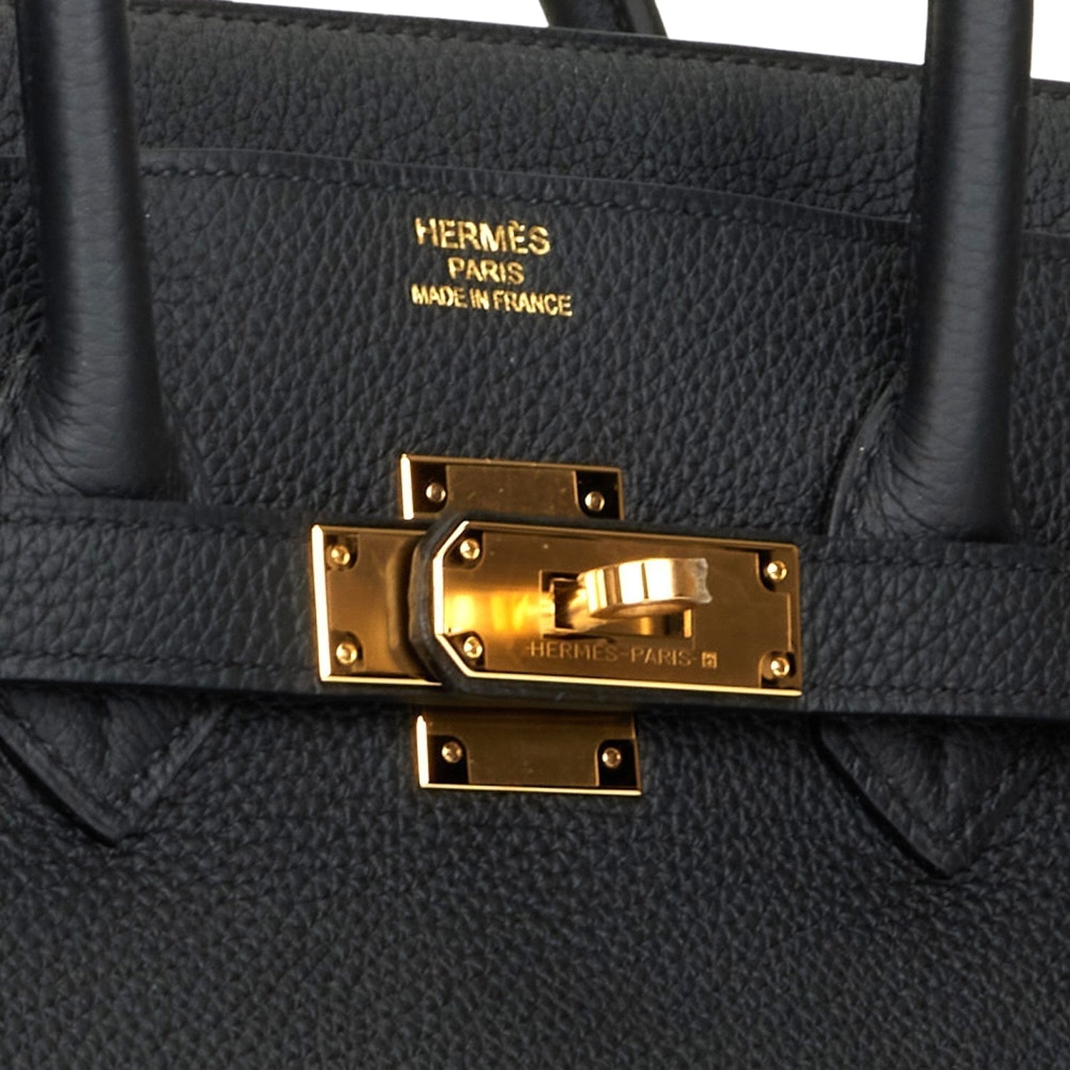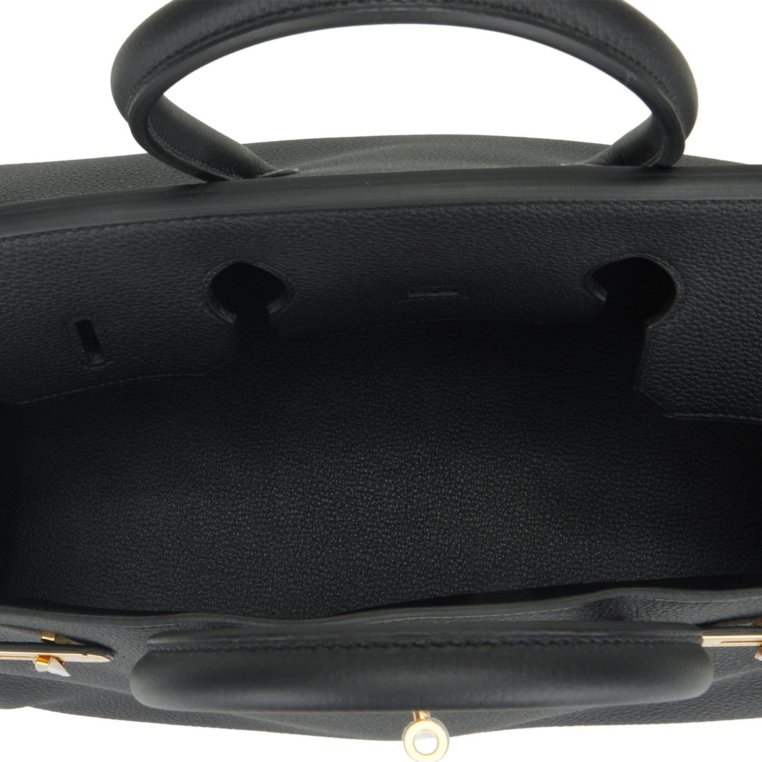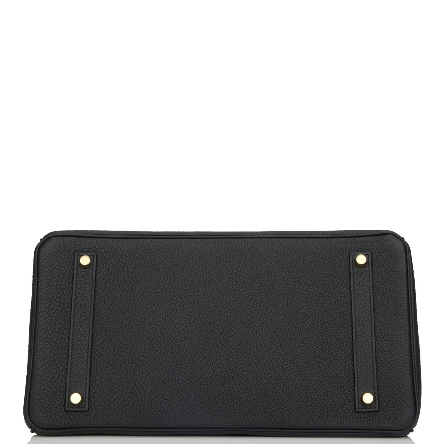This Birkin is in Black togo leather with gold hardware and has tonal stitching, front flap, two straps with center toggle closure, clochette with lock and two keys, and double rolled handles.