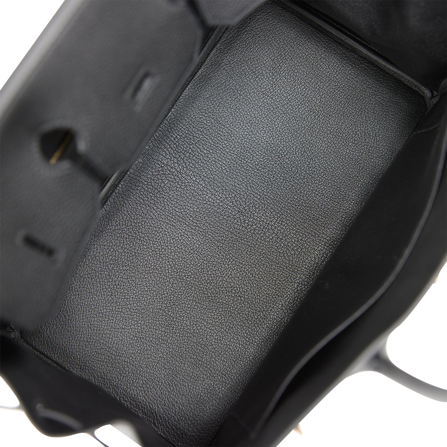 The interior is lined with black chevre and has one zip pocket with an Hermes engraved zipper pull and an open pocket on the opposite side.
