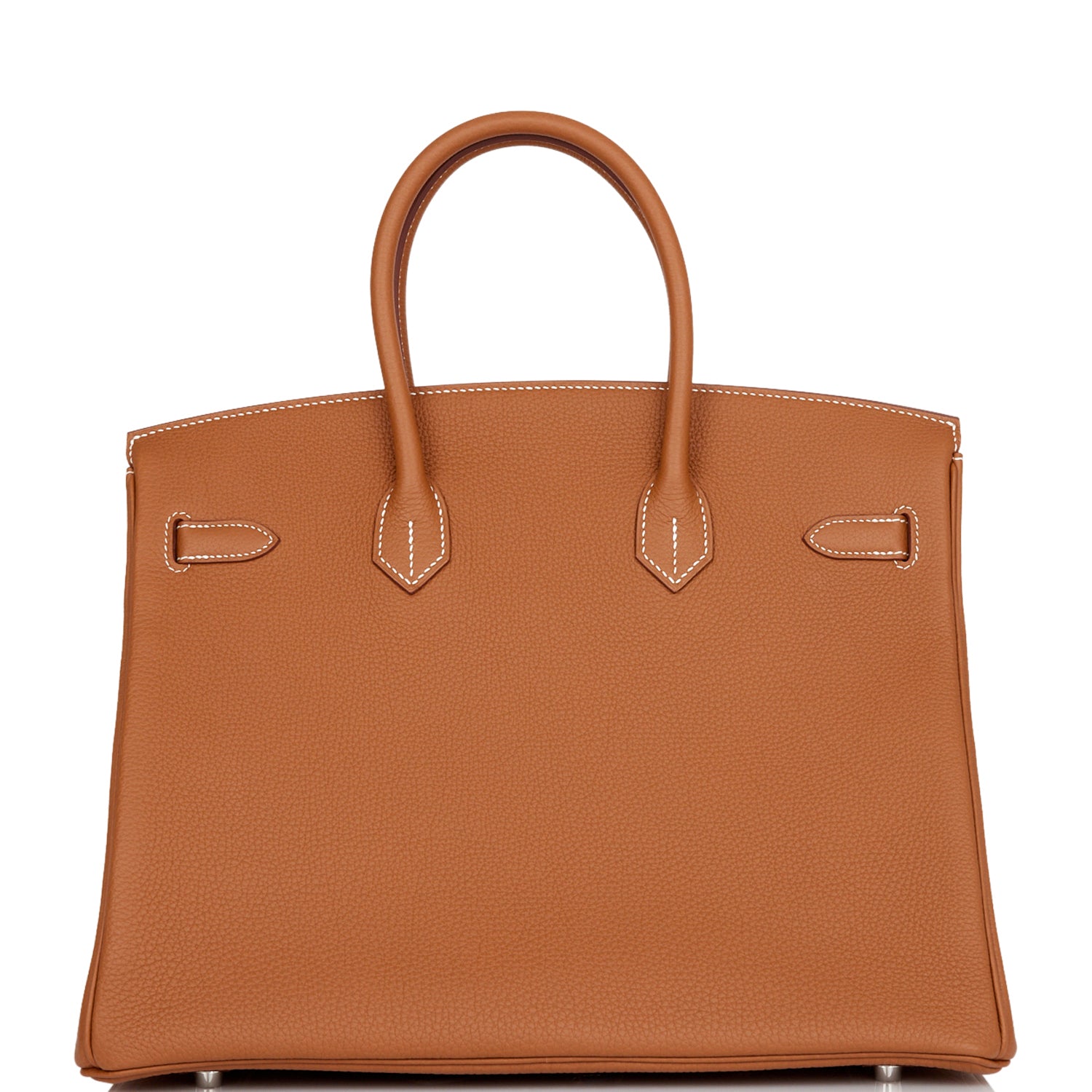 This Birkin is in Gold togo leather with gold hardware and has contrast stitching, two straps with front toggle closure, clochette with lock and two keys and double rolled handles.