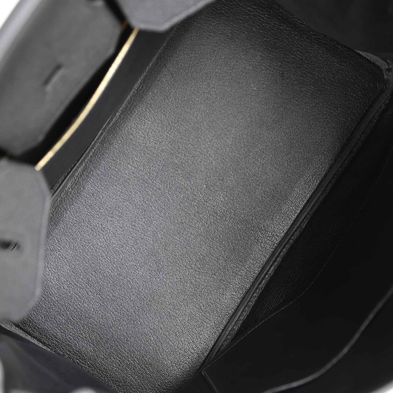The interior is lined with black chevre and has one zip pocket with an Hermes engraved zipper pull and an open pocket on the opposite side.