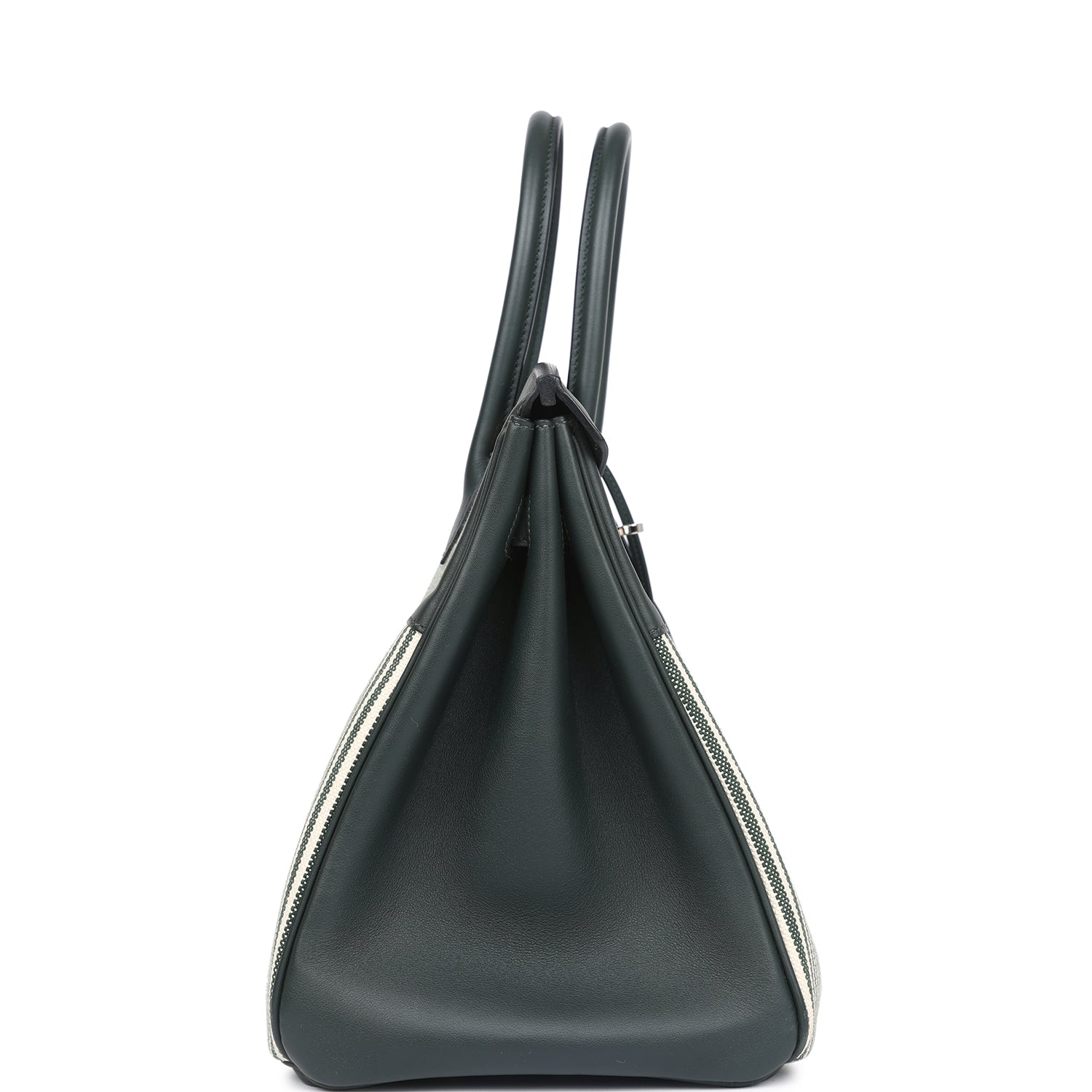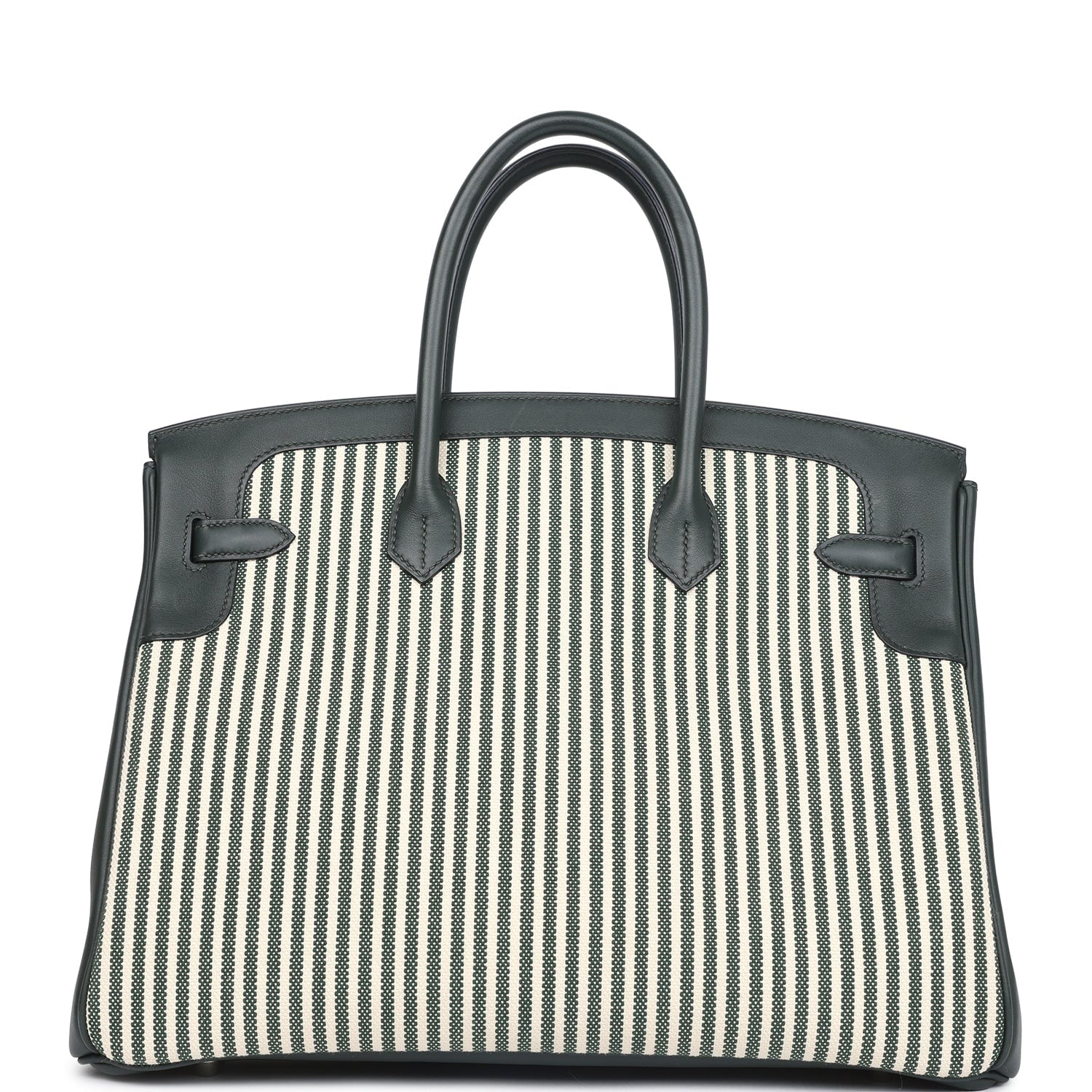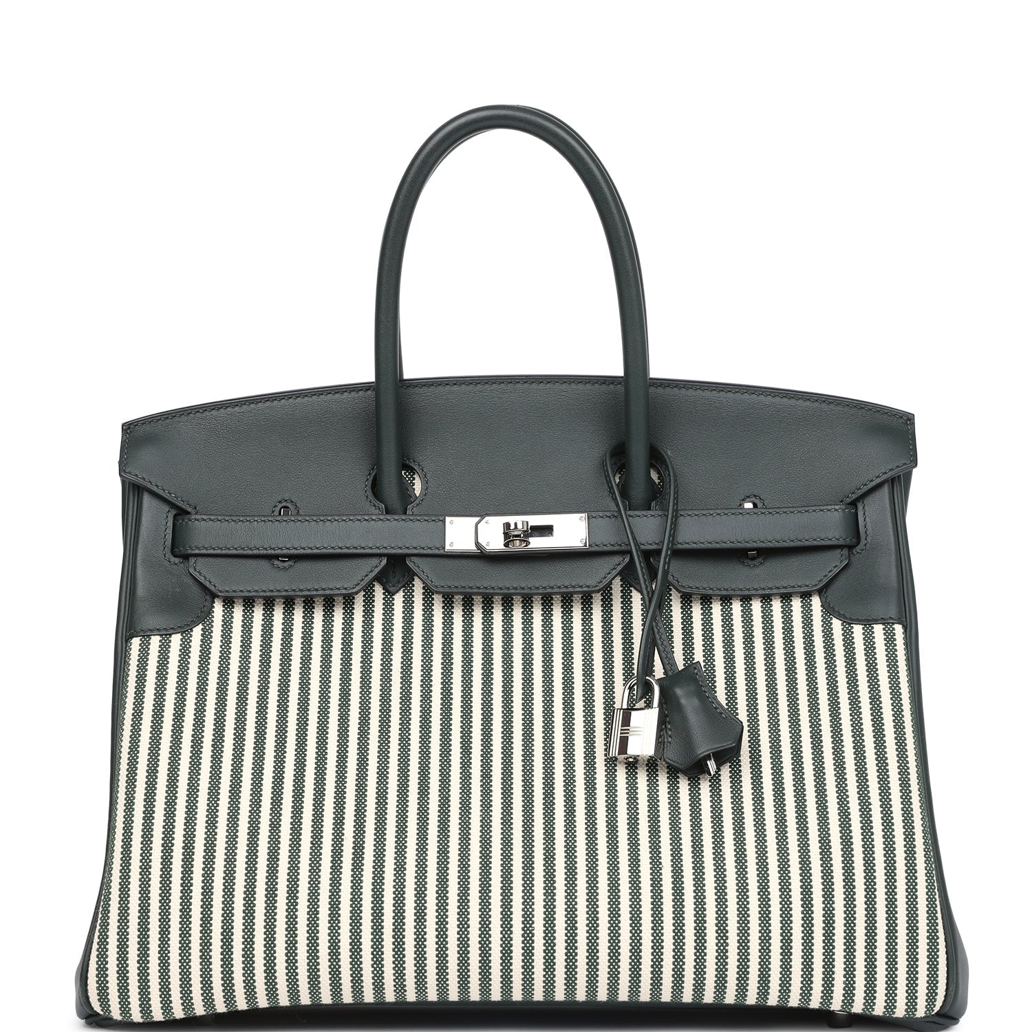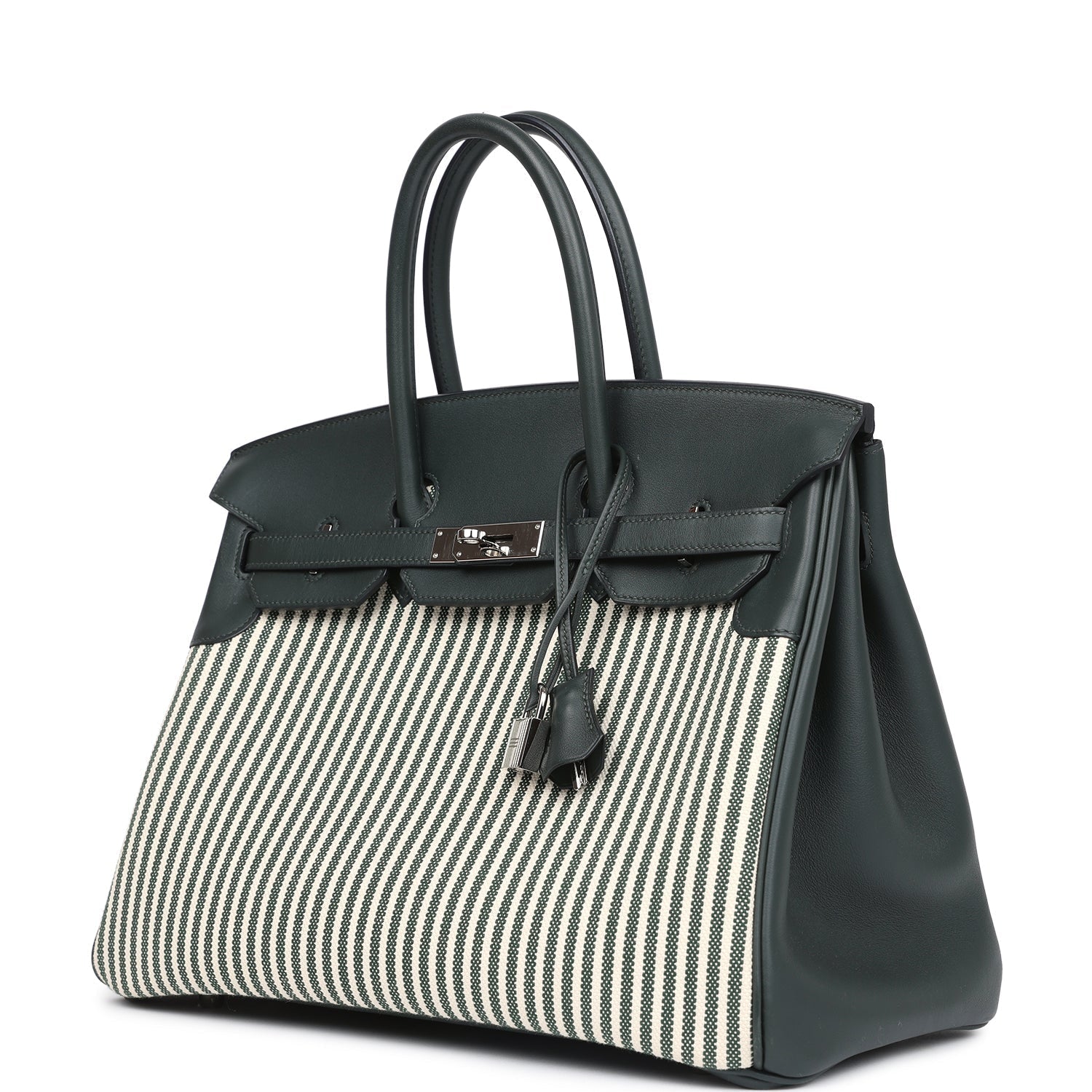 Hermes Birkin 35 Toile Riga and Vert Anglais Swift Palladium Hardware