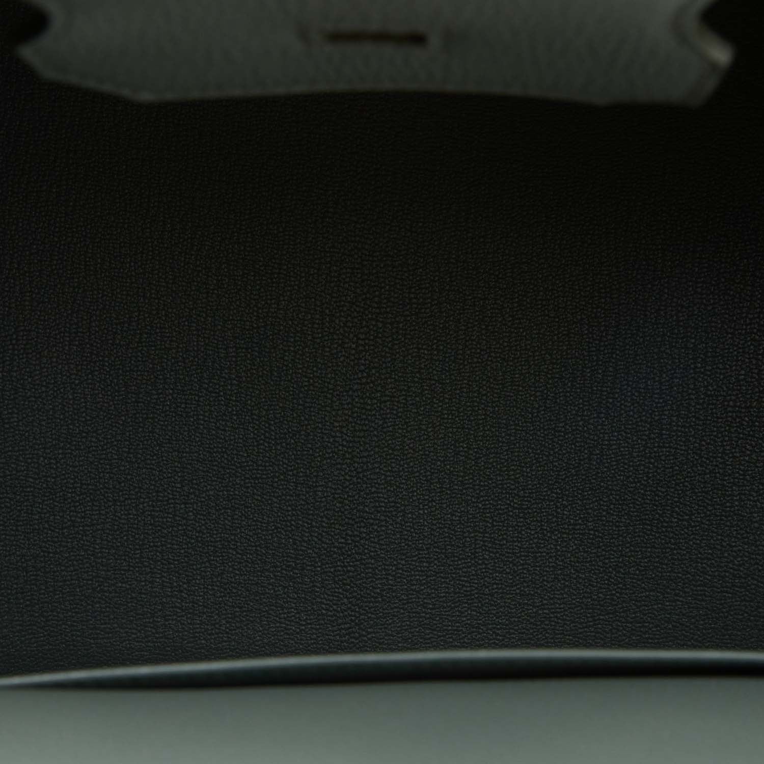 The interior is lined with Vert Amande chevre and has one zip pocket with an Hermes engraved zipper pull and an open pocket on the opposite side.