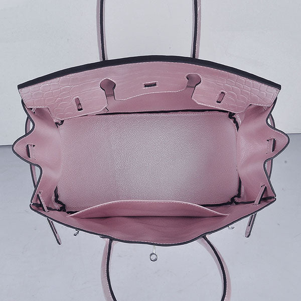 Hermes Birkin 35cm 6089 New Crocodile Vein Handbags Pink Silver