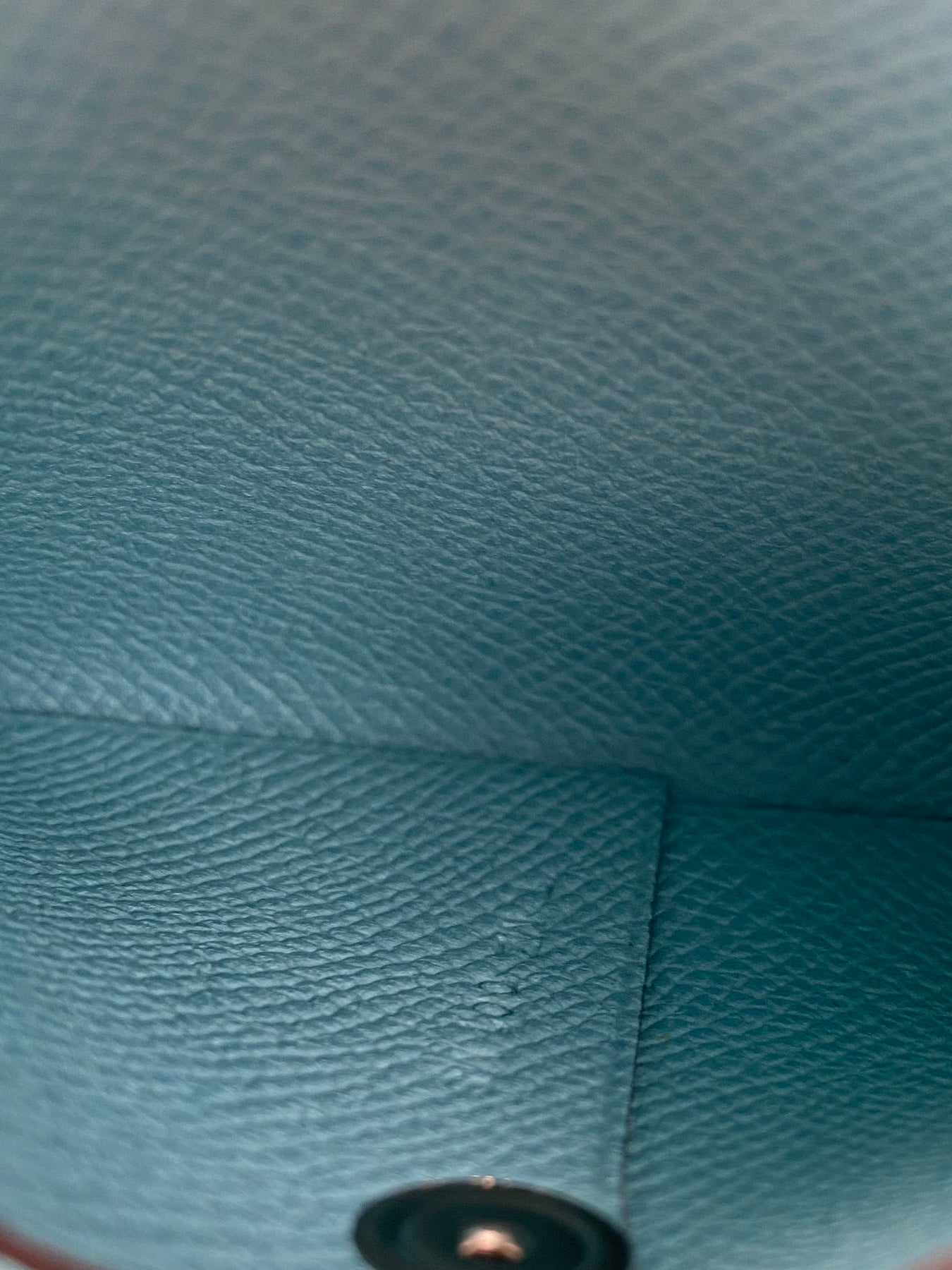 Description : Adorable change purse in a light turquoise blue with a button closure. In pristine condition; brand new.