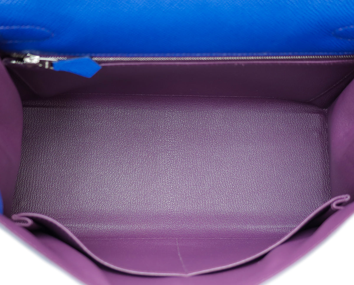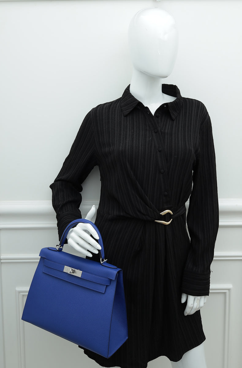 Hermes Bleu Electric 28 Sellier Kelly Bag