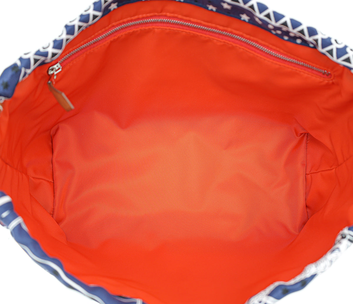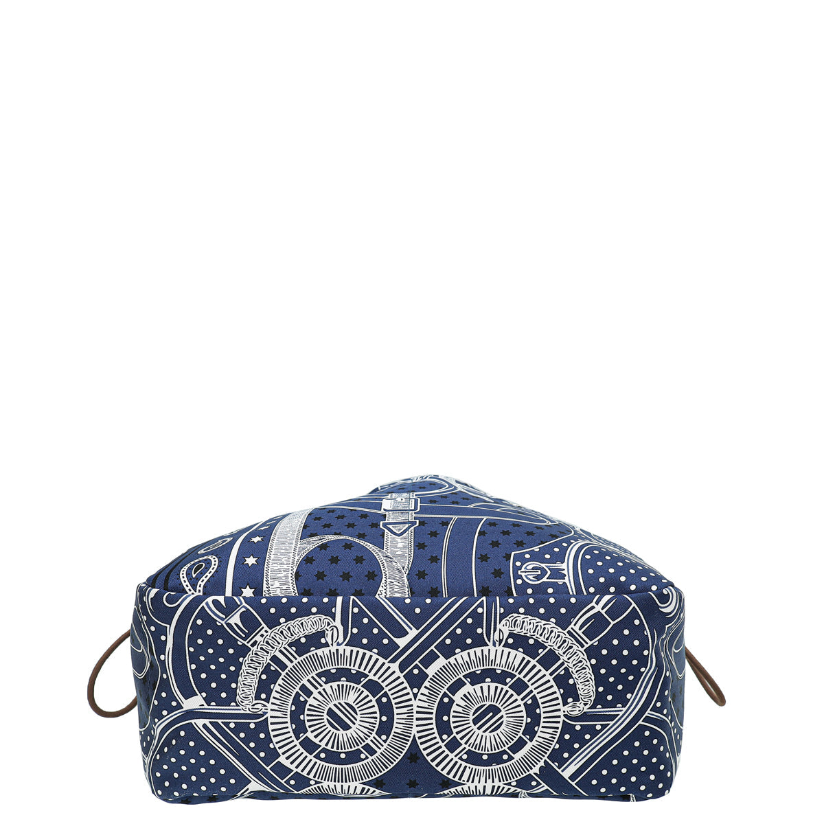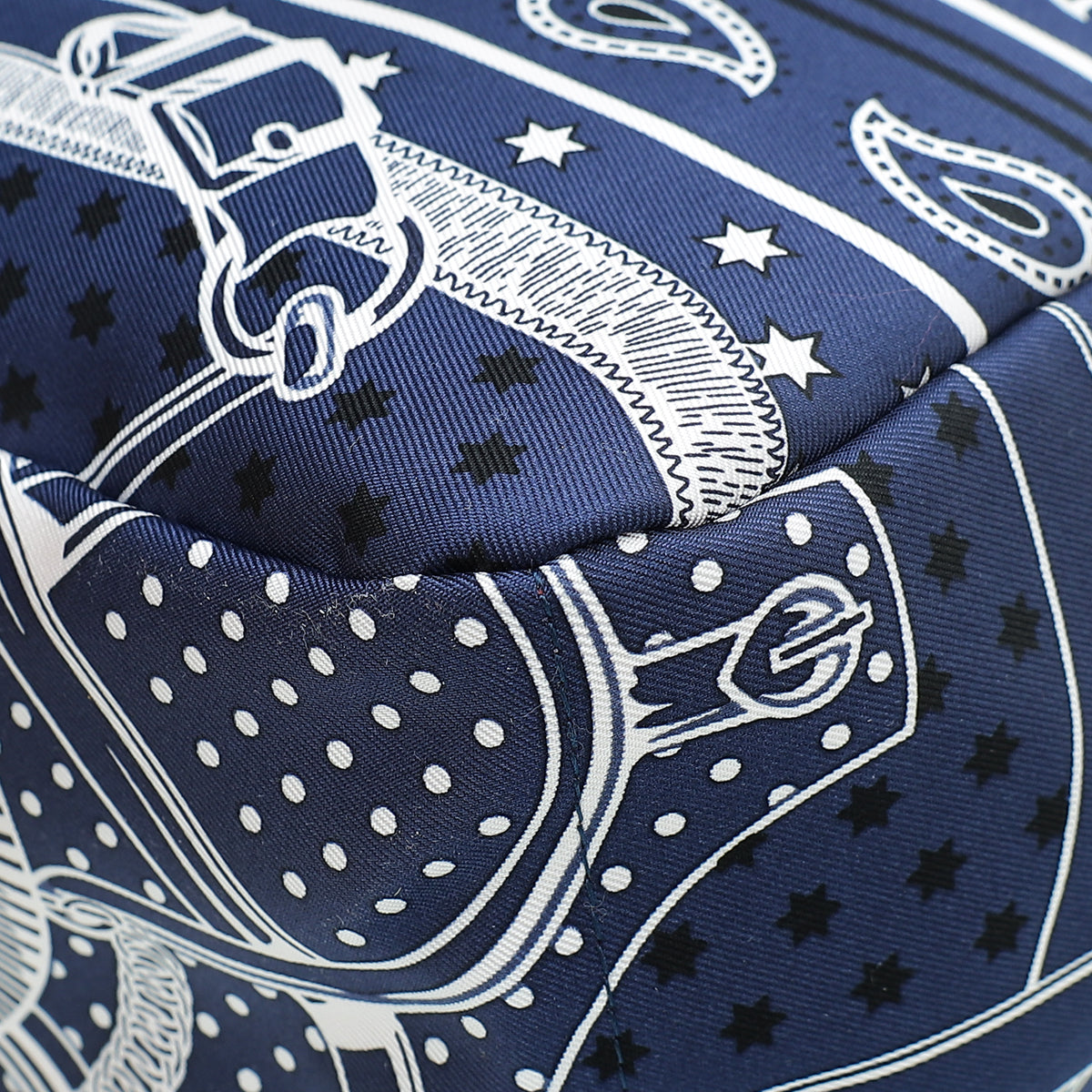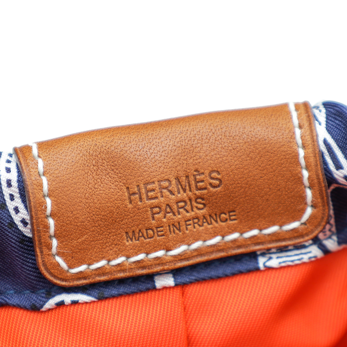 • Material: Bleu Nuit "Eperons d'Or" Printed Silk with Barenia Calfskin Leather Trim