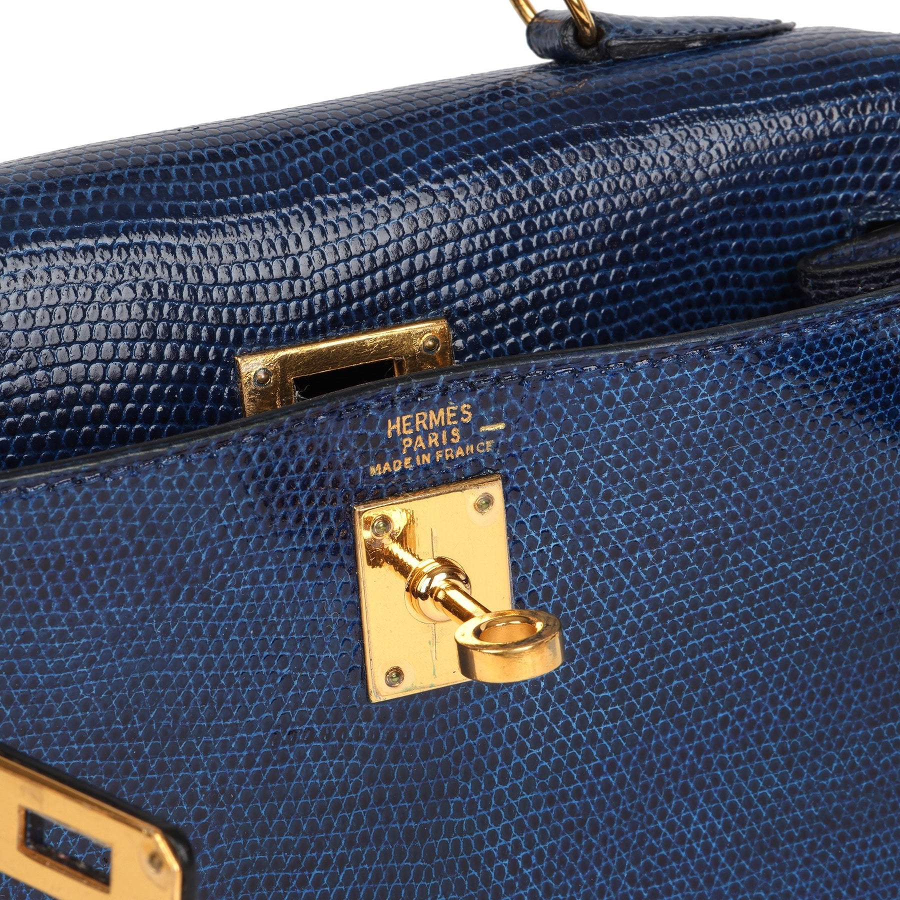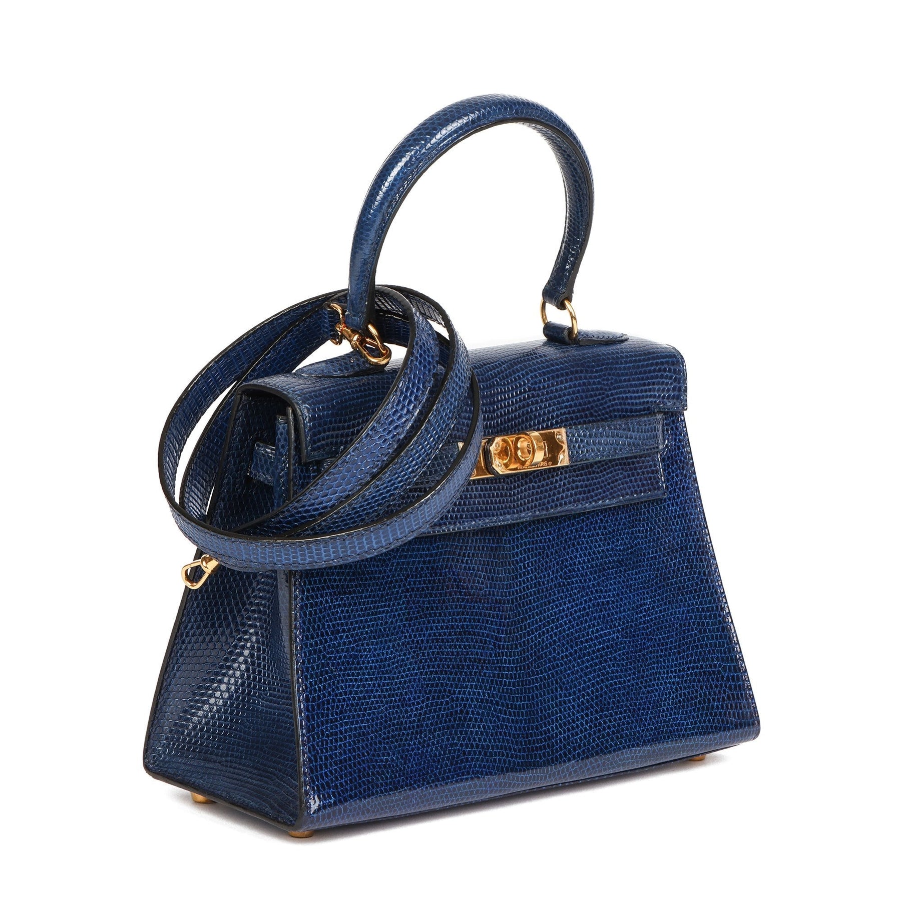 Hermes Blue Saphir Lizard Leather Vintage Kelly 20cm Sellier Shoulder Bag