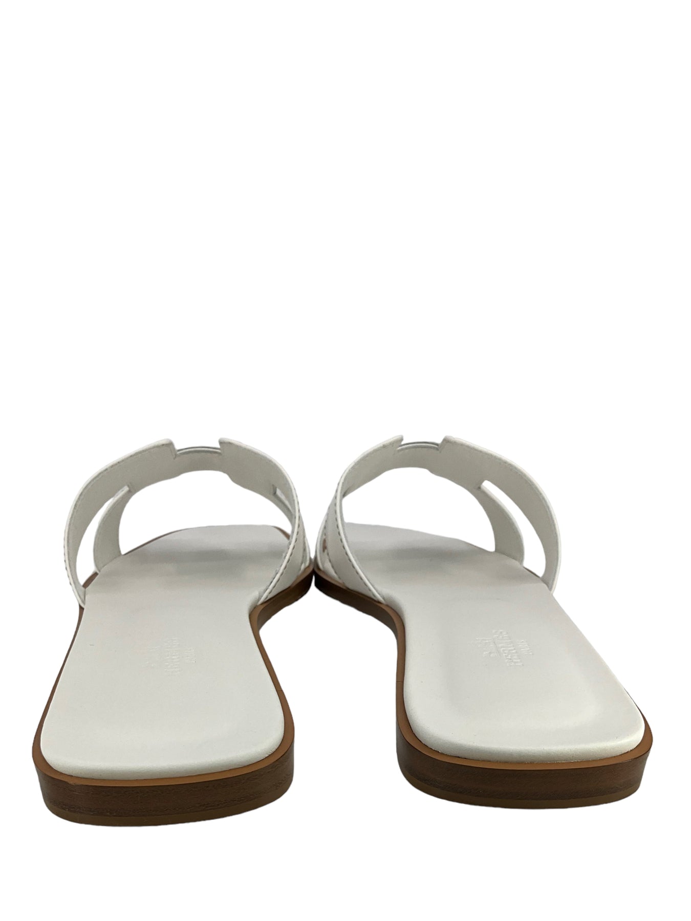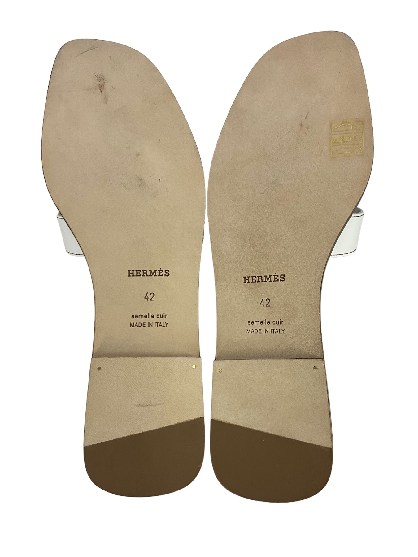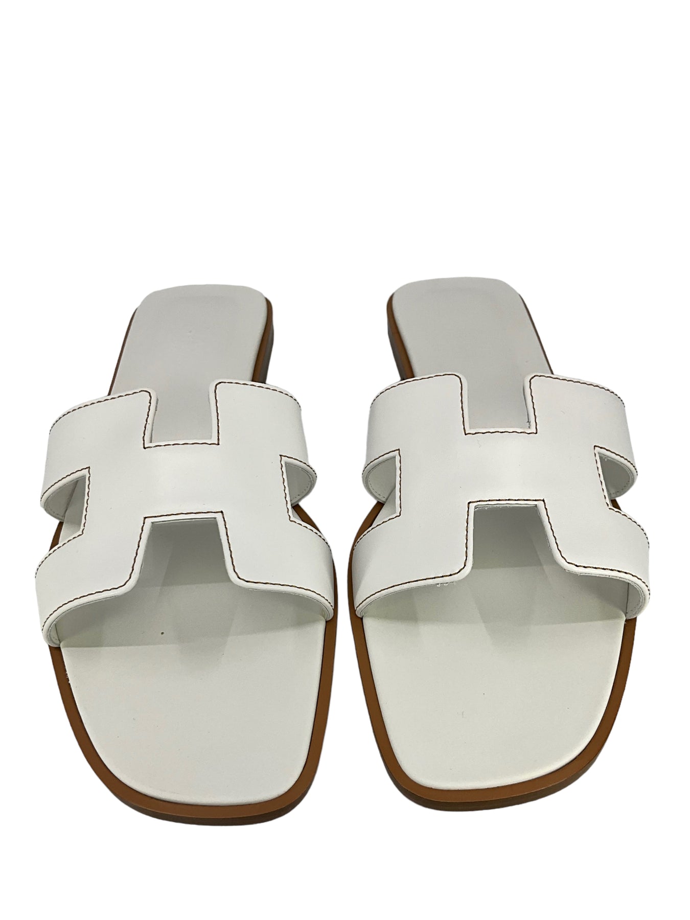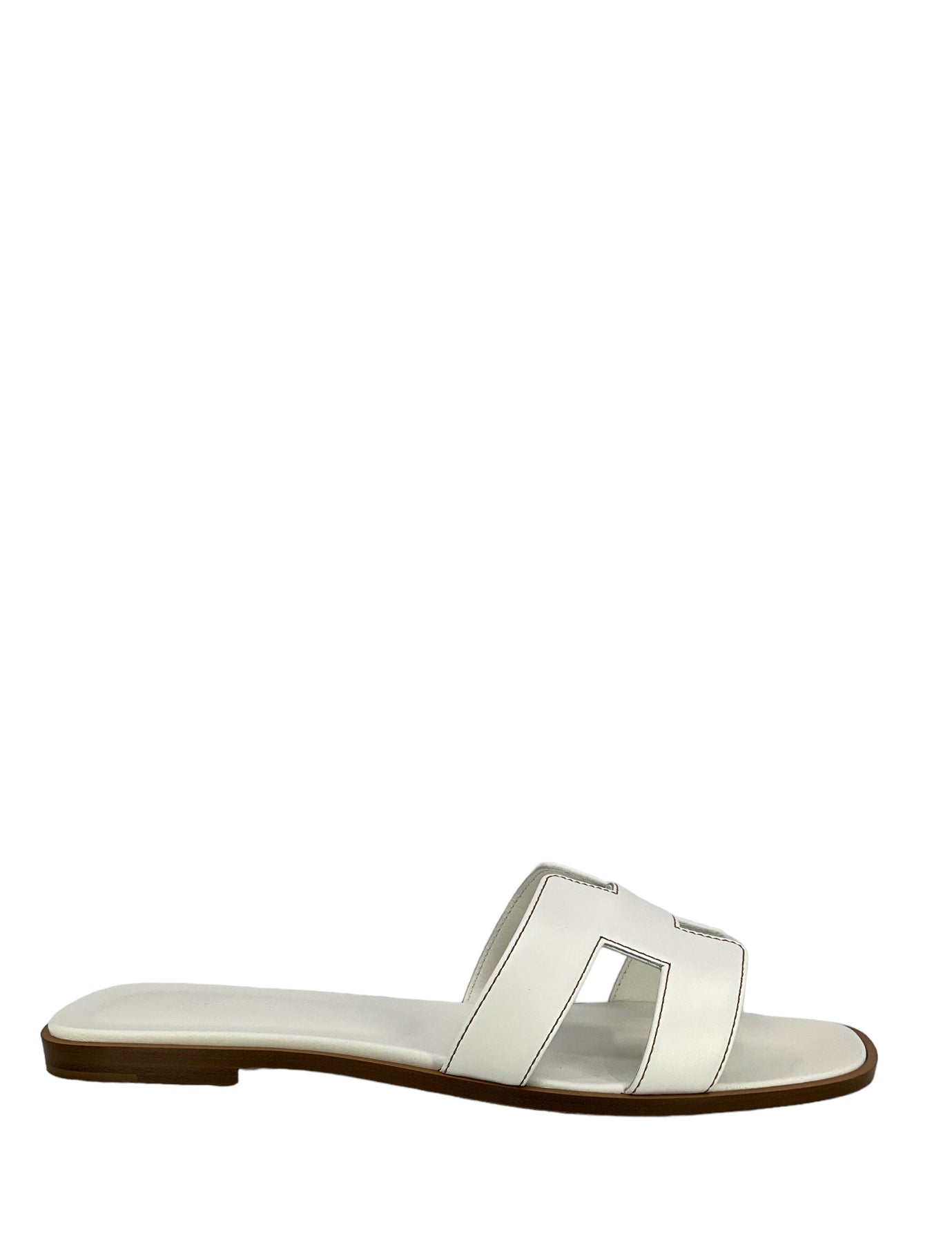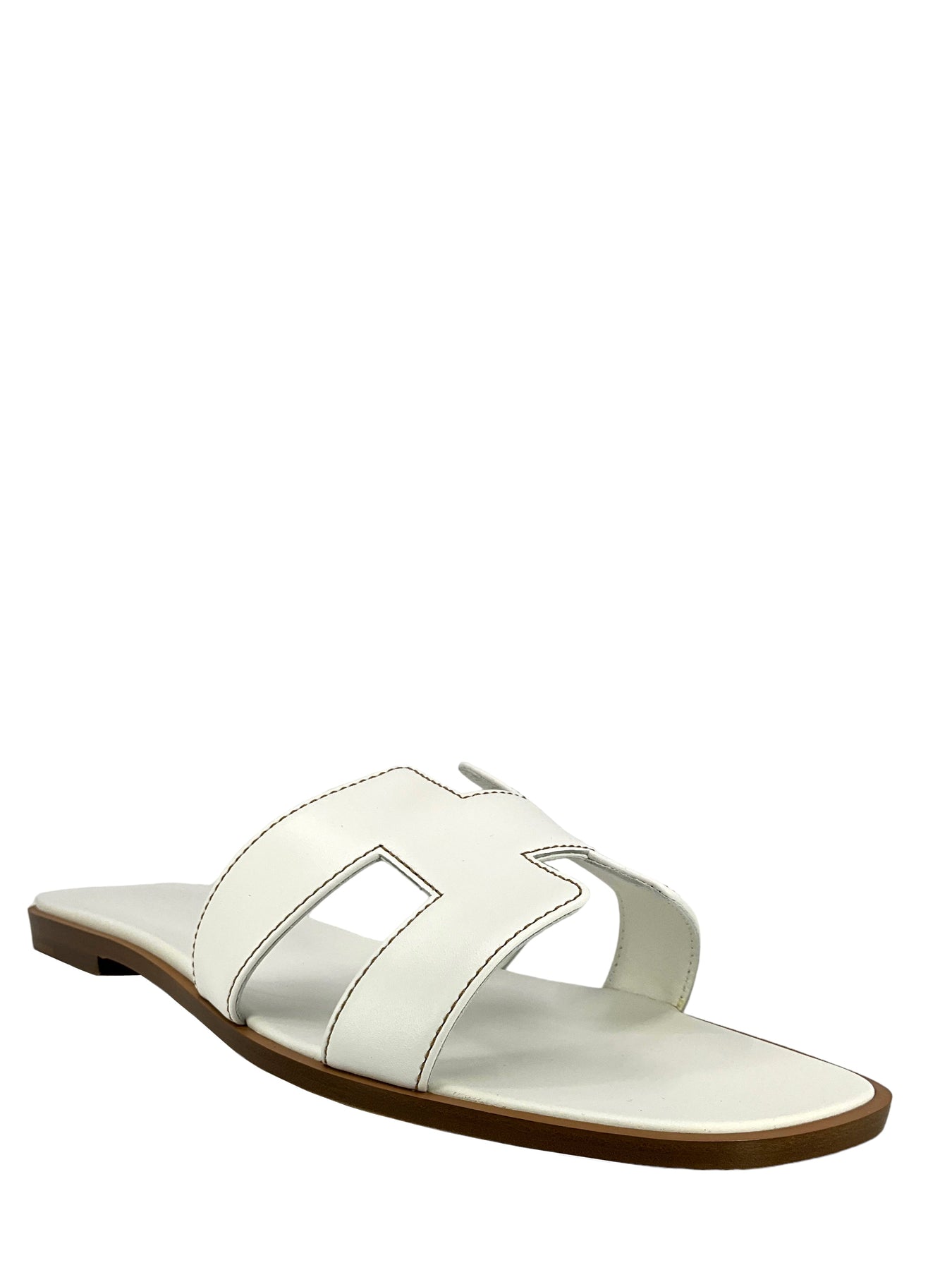 This pair of HERMES Calfskin Leather Oran Sandals Size 12 (IT 42) define simple elegance. Expertly crafted in Italy from supple white leather with the iconic, signature 'H' cutout.