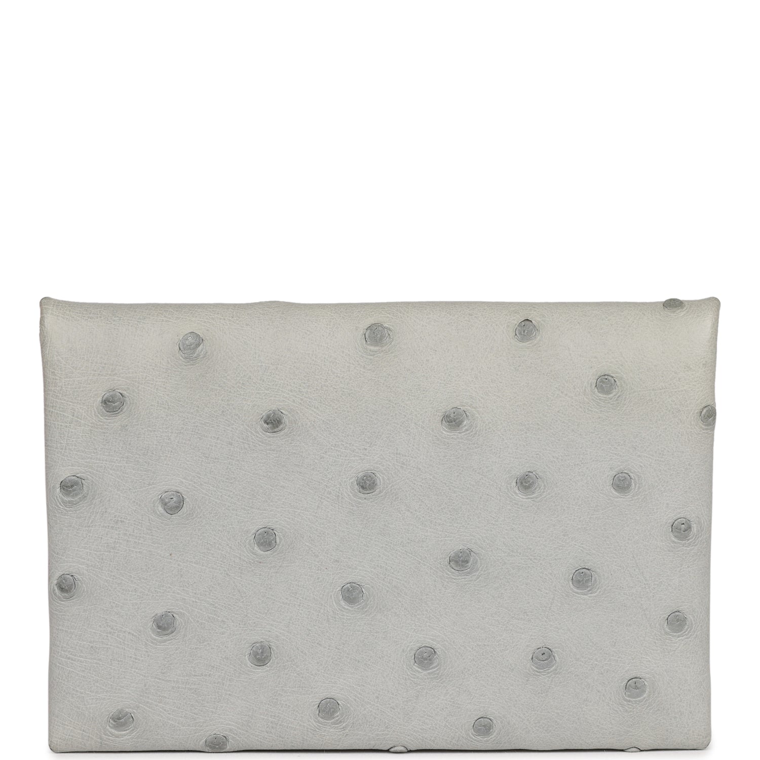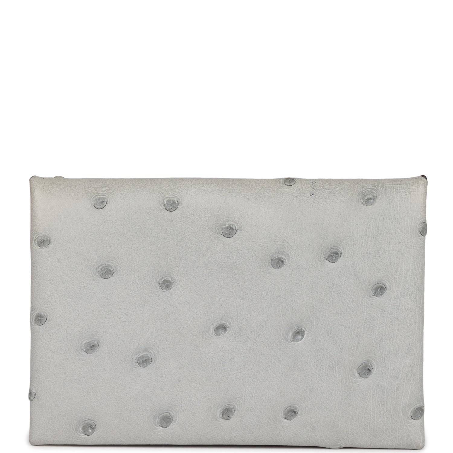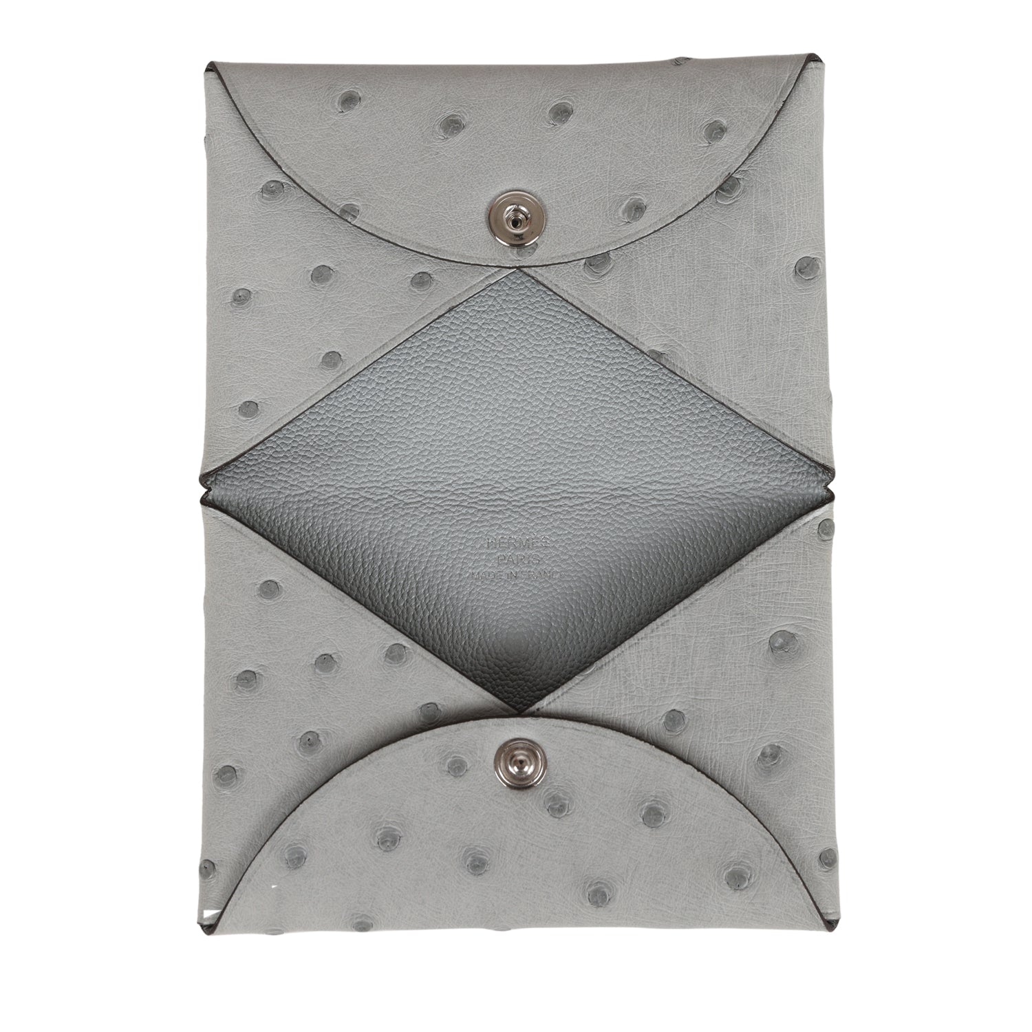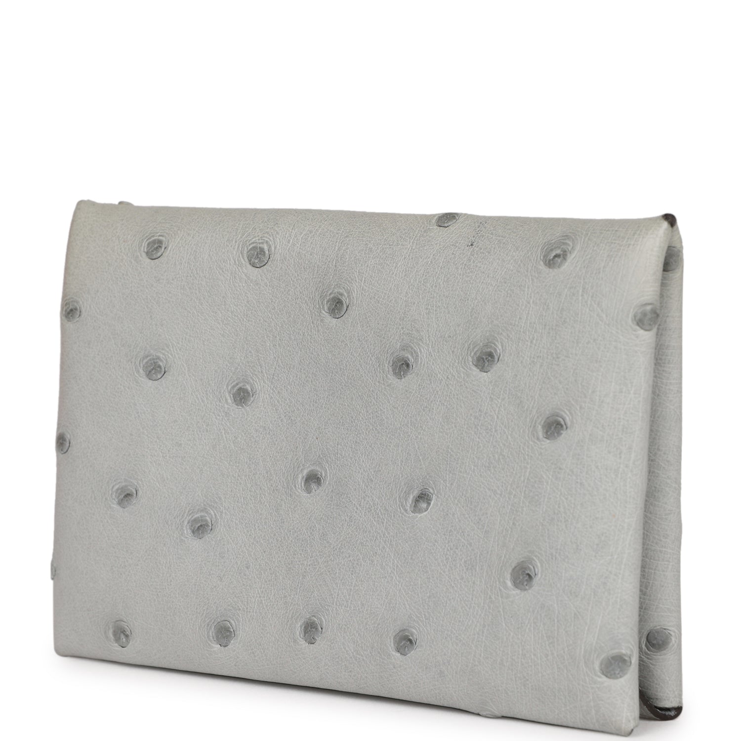 Hermes Calvi Card Holder Gris Perle Ostrich Palladium Hardware