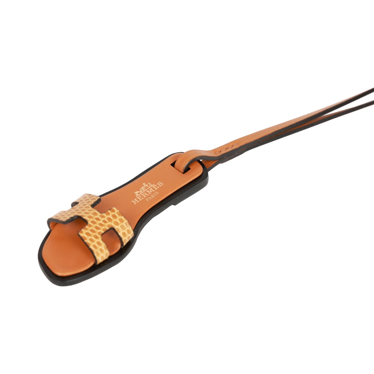 This Oran Nano bag charm is in chai lizard and sable calfskin leather.