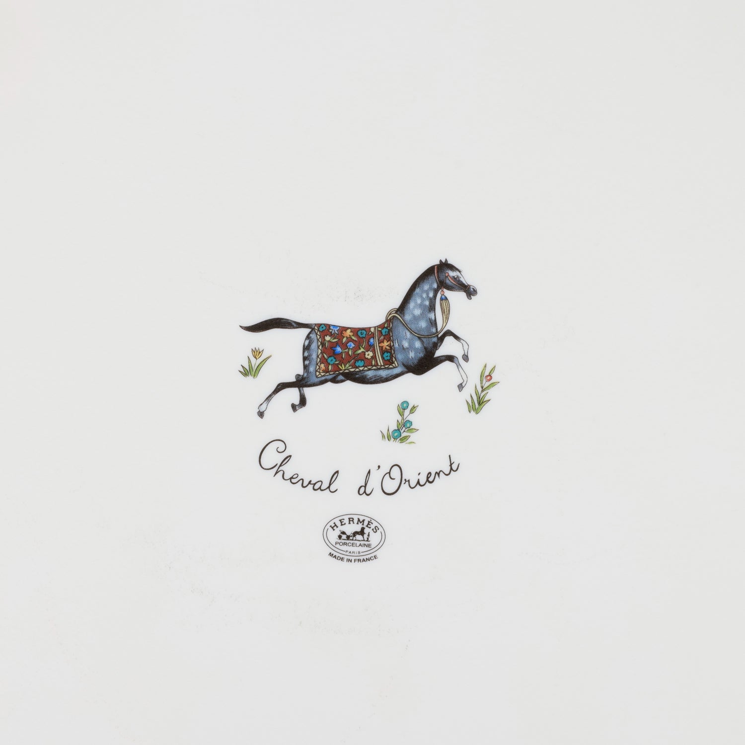 Hermes "Cheval D'Orient" tart platter of porcelain in multicolor.