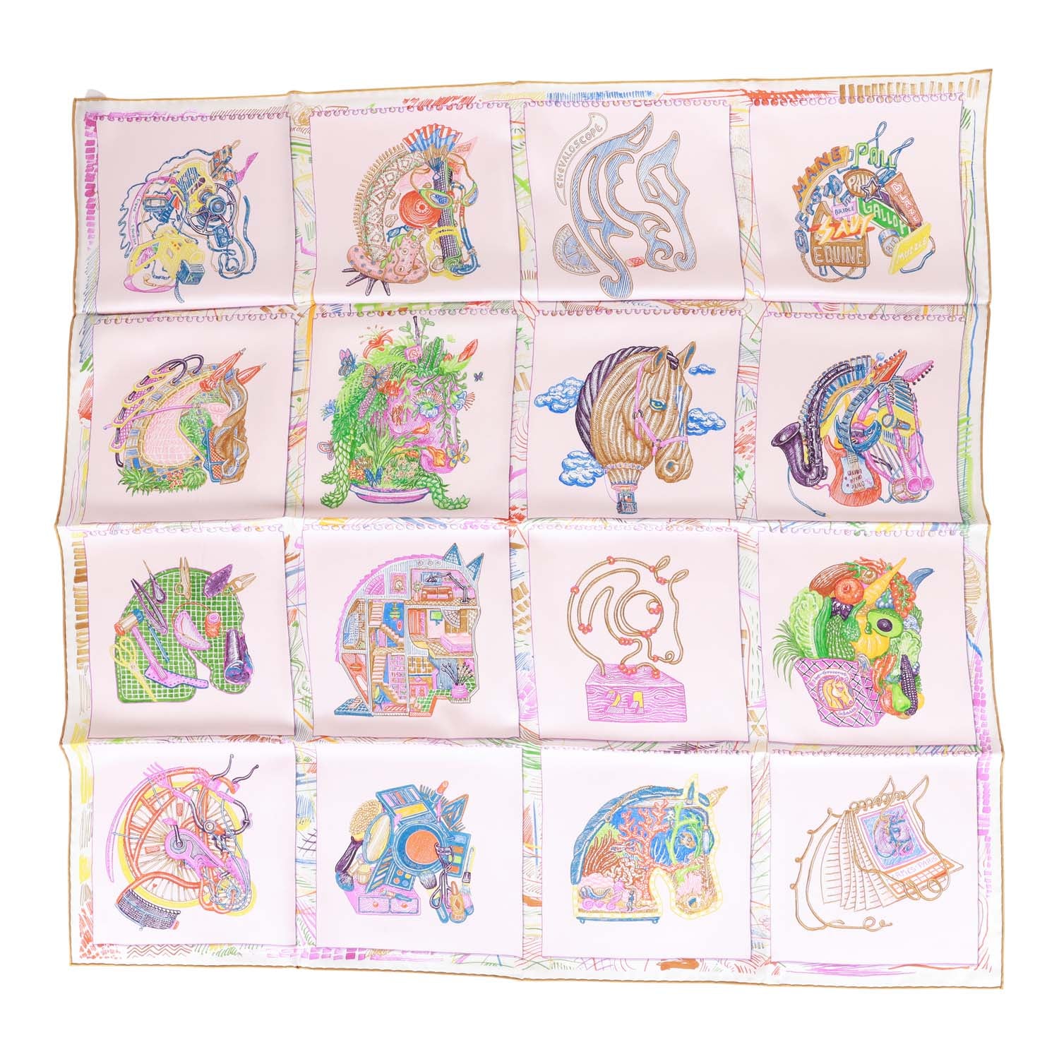 Hermes "Chevalpscope" Rose Nacre/Vert Multicolor Silk Shawl 90cm